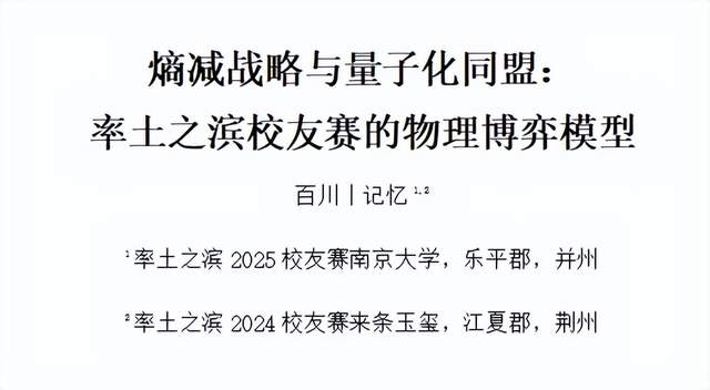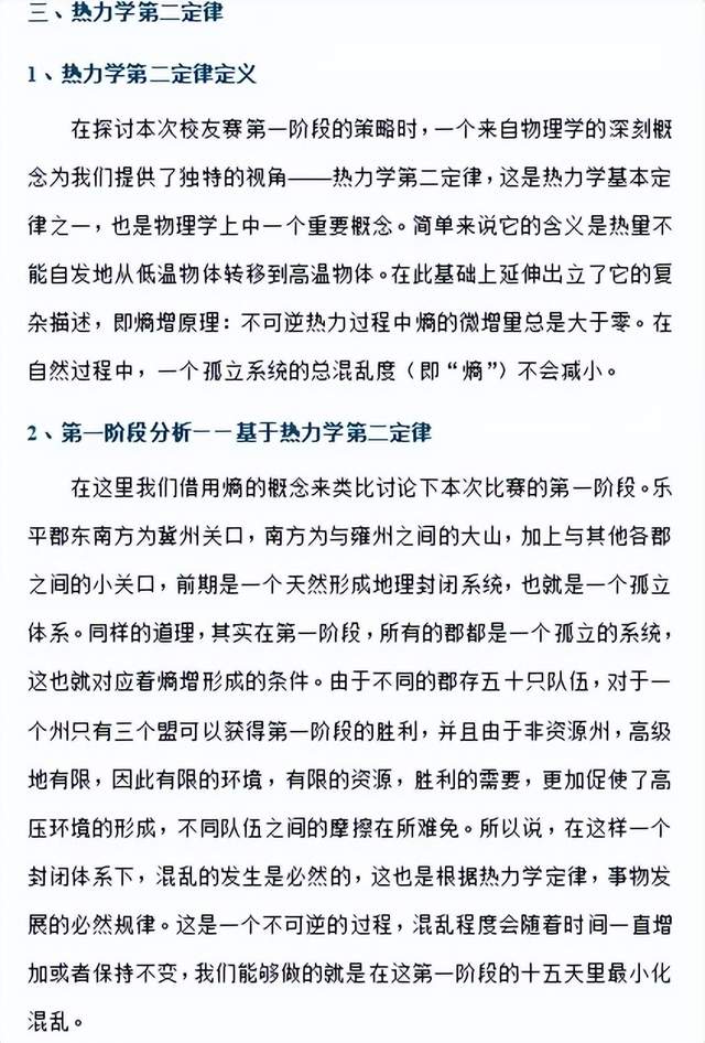 但谁能想到,这位大佬为了帮助盟主打征服,提前规划布局,竟然把自己所学的物理知识和校友赛玩法来了个深度融合,洋洋洒洒写下一篇名为《熵减策略与量子化同盟:率土之滨校友赛的物理博弈模型》的战术论文。