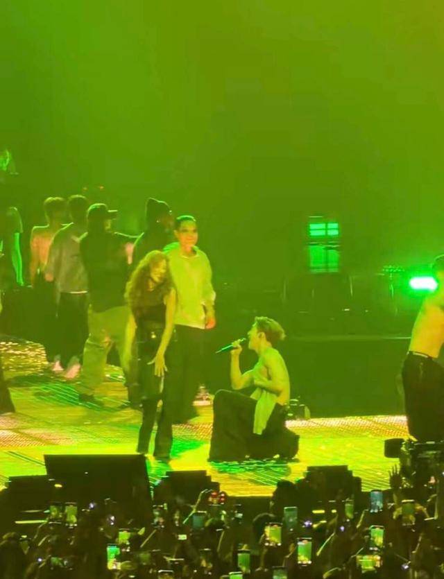 从上传的片段中可以看出,陈凯琳在距离舞台比较近的地方时,王嘉尔亲自走到她面前温柔蹲下,并深情的说,感谢你我的公主今天来到现场。