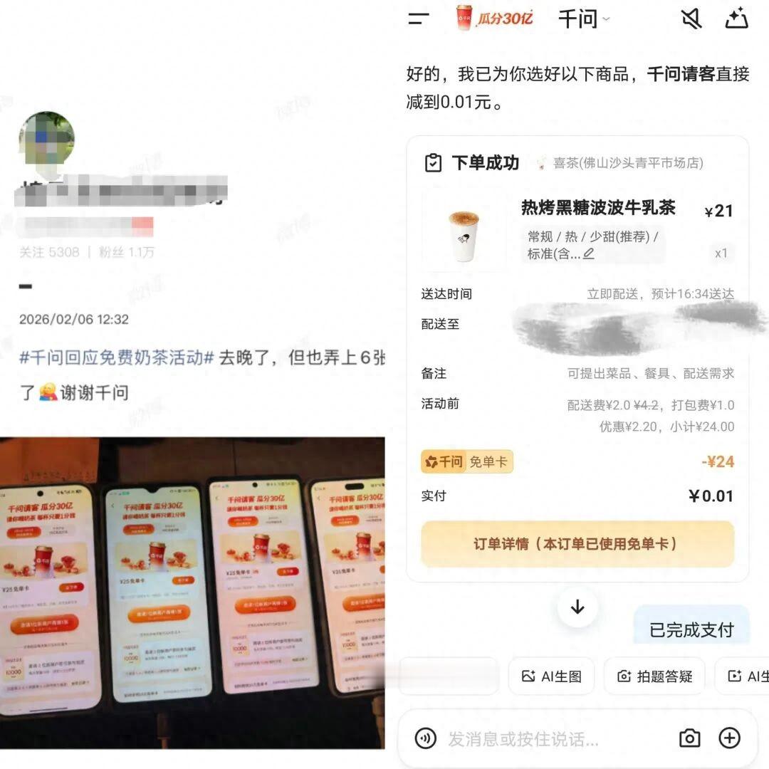 就在这一天,千问App默默更新,发出了瓜分30亿元请大家喝奶茶的活动。