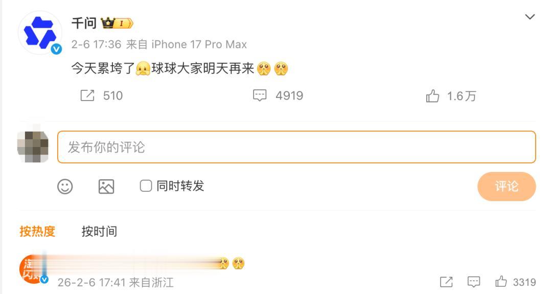 到了下午4点多,千问的订单已经突破了1000万单。而大家薅羊毛的热情还在持续,直接把千问累到发微博求饶。