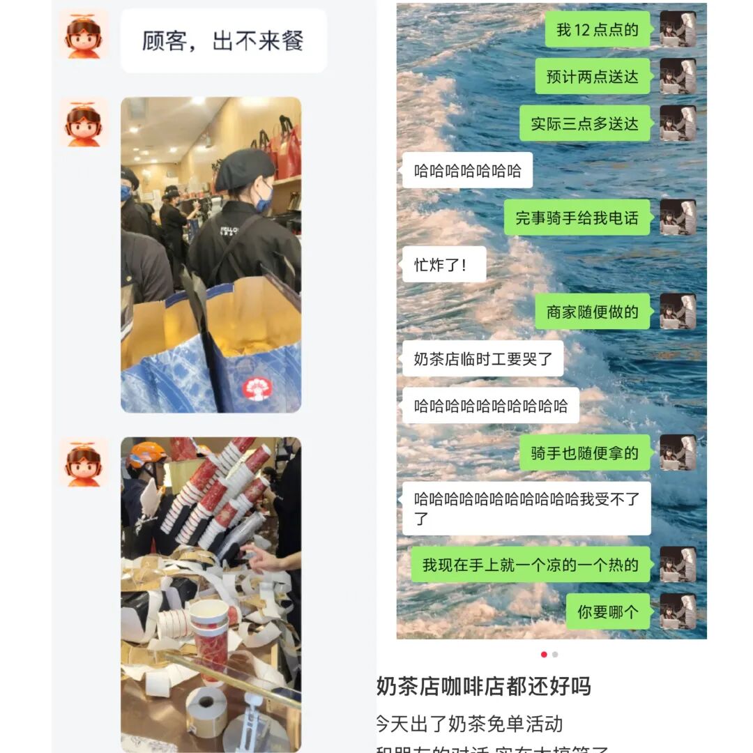 北京打工人@面包好好吃的 那天中午12点进入千问点了一杯奶茶,显示预计下午2点送达,结果骑手下午3点钟给她打电话,汇报了现场爆单情况,说是商家随便做的,他也随便拿了两杯,主打一个盲盒配送。3点多的时候,她拿到了一杯凉的和一杯热的奶茶,很贴心。她说,比起喝奶茶薅羊毛,这次AI点奶茶的新奇经历成了她一天的乐趣来源。
