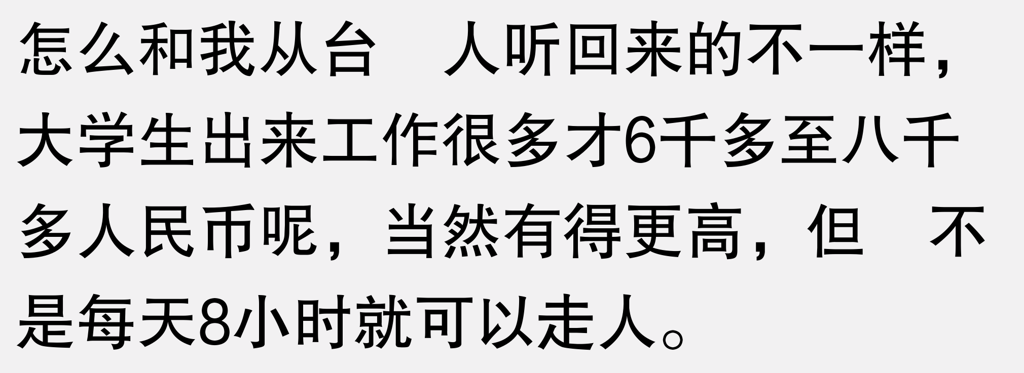 嗯……感觉很怪台湾🐔的价格在澳洲都是最低的了,不相信台湾能发达如果真发达,那么多台湾年轻女孩去做🐔?