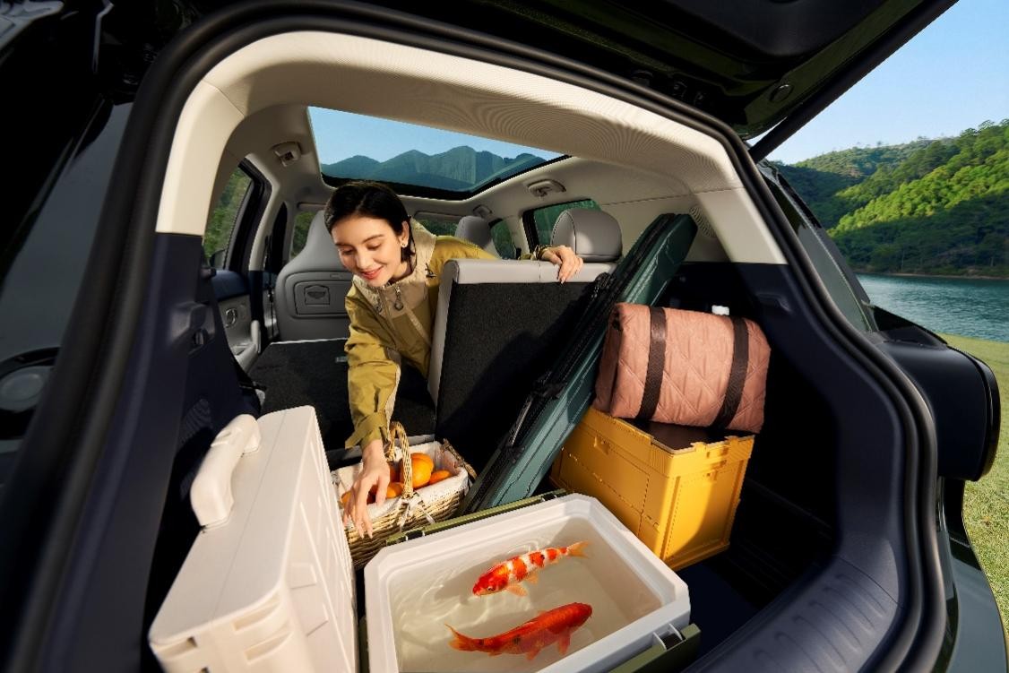 新车拥有百变座椅场景,支持冲浪板模式、小憩躺卧模式、大床模式、宠物&搬家模式、隐私收纳模式等,可快速切换露营、通勤、载物全场景用车需求。主驾靠背还配备自带双挂钩与镂空杯架的折叠小桌板,为后排带来更实用的随行桌面。全车规划34处人性化储物空间,前端双层桥洞+中部翻盖隐私舱+后部开放补给站组合等设计,让随身物品有序收纳。