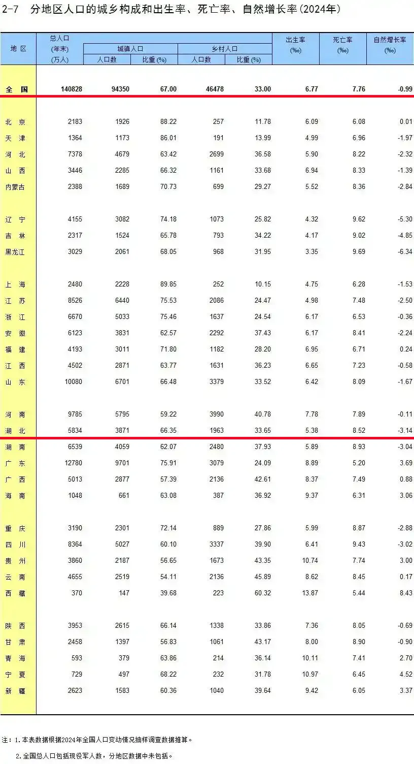 国家统计局数据表明:2024年湖北的人口出生率为5.38‰,在全国排名倒数第七,仅高于黑龙江、吉林、辽宁、上海、江苏和天津。