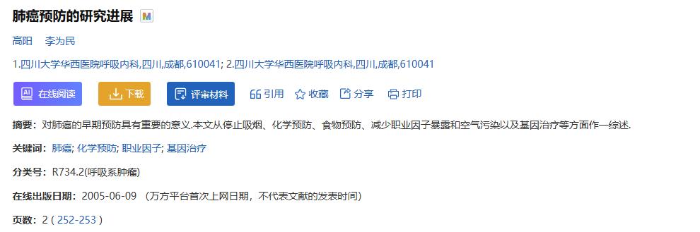 高阳 李为民.肺癌预防的研究进展,西部医学.2005-06-09