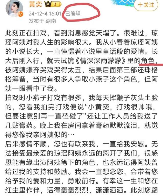 在所有的发文中,网友都盛赞演员们对于琼瑶阿姨的感恩之心,有情有义。唯独最先发文的黄奕,却被骂得紧急更改了文案。