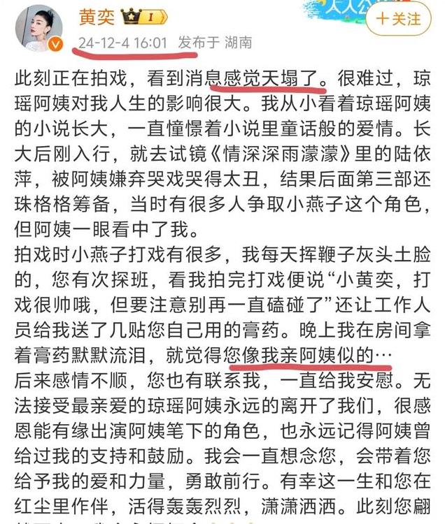 作为影视从业者,听闻琼瑶阿姨的离去。很多一线艺人,纷纷在第一时间发文,缅怀阿姨对他们曾经的知遇之恩。