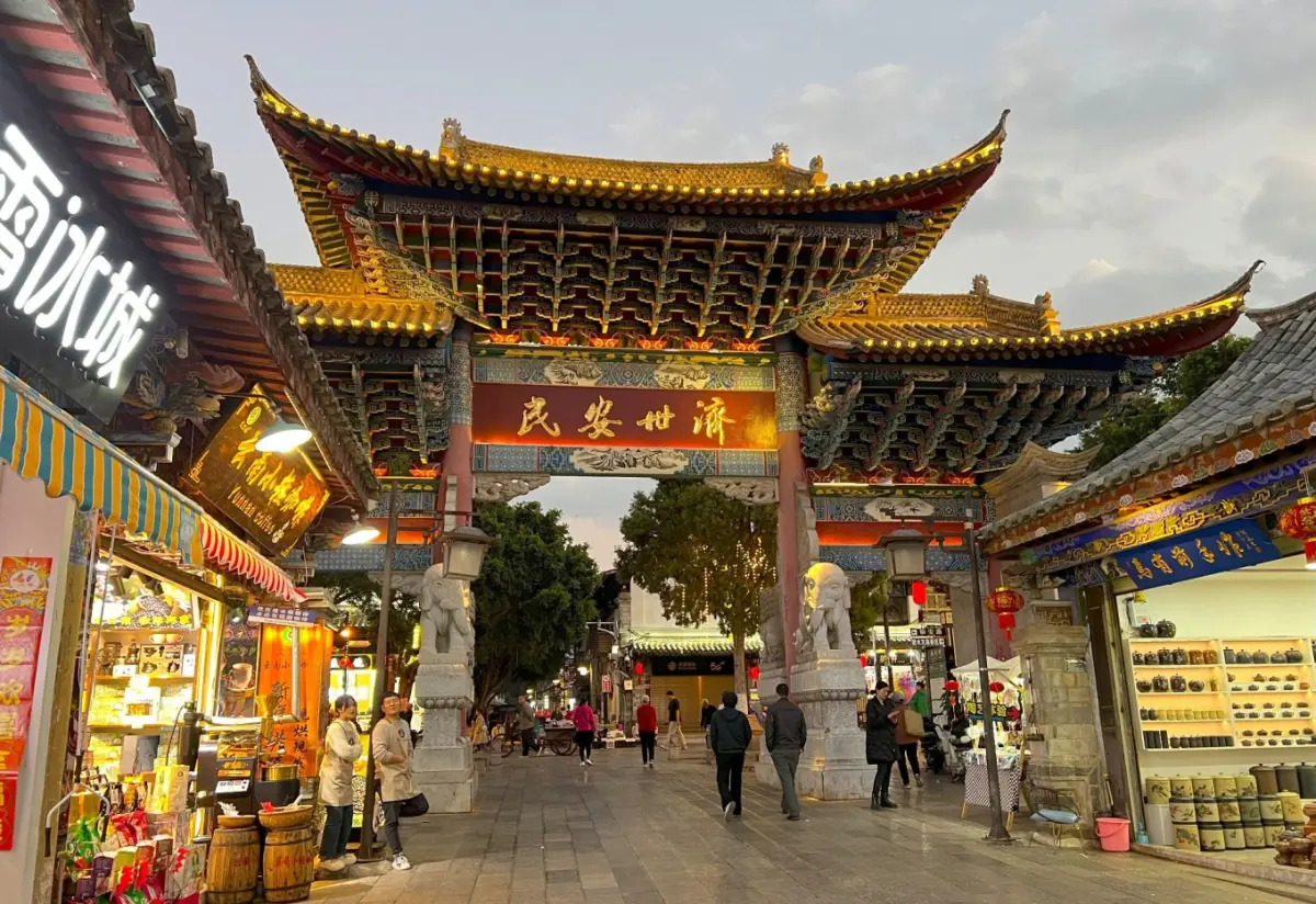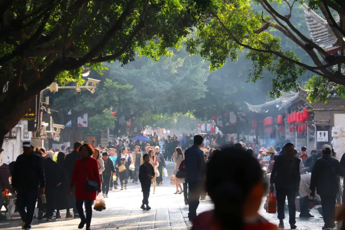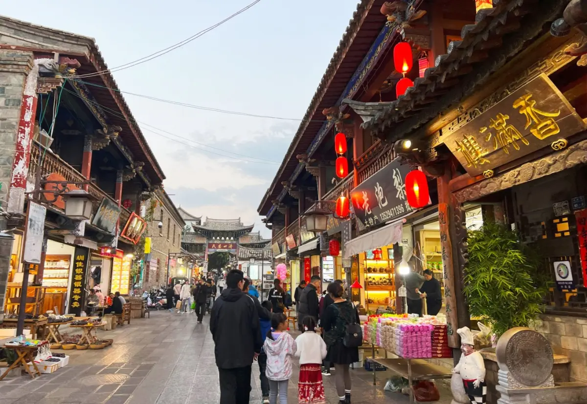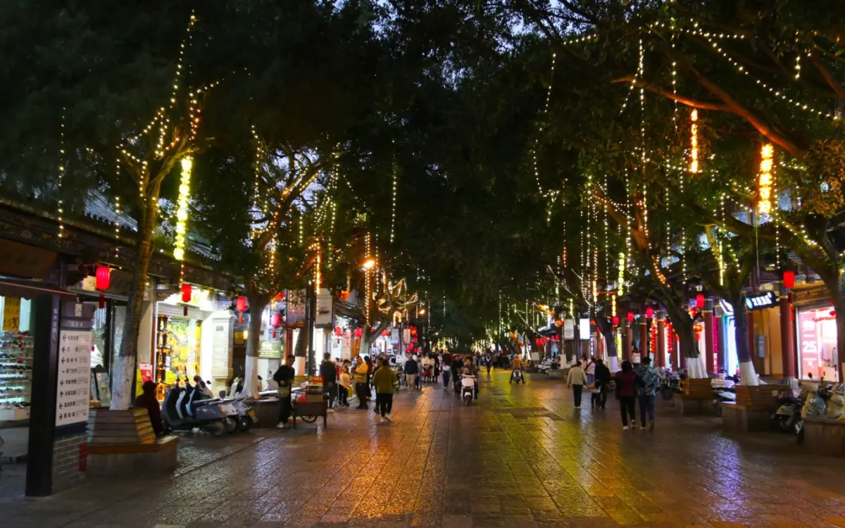 灯光亮起,古城的另一种色彩呈现在游客和顾客面前。