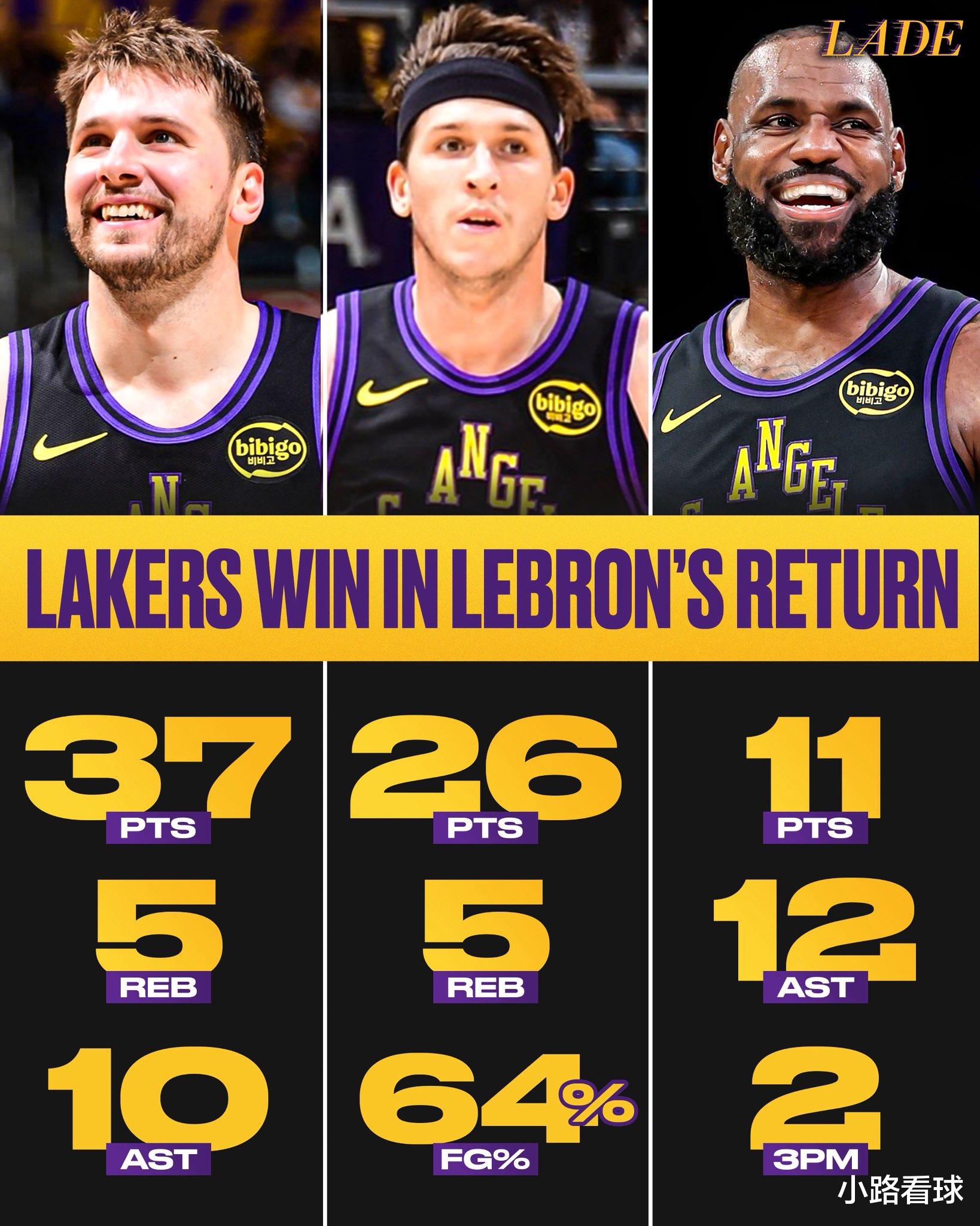对于湖人球迷来说,这或许是本赛季最令人激动的时刻,主场迎战爵士,他们终于迎来了勒布朗·詹姆斯的复出,自此,完全体湖人正式登场,尽管上半场因为磨合等问题,让球队一度多次落后爵士两位数,但湖人的天赋还是高于爵士,最终在下半场完成逆转,以140比125大胜爵士,豪取三连胜,本场获胜后,湖人战绩来到11胜4负,排西部第四,据统计,这是湖人自2020-2021赛季以来他们取得的最佳开局,同时也是东契奇职业生涯中最好的15场开局。