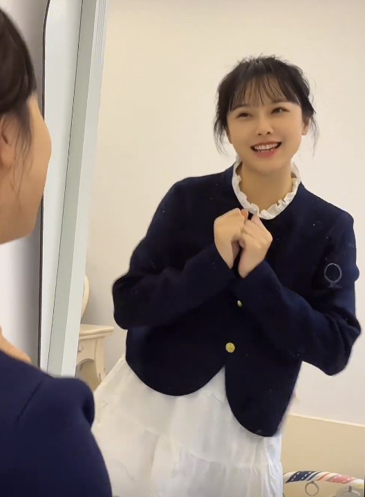 直播、视频有美颜滤镜,黄老师娇俏精致的脸蛋,跟刚毕业的学生没啥两样。
