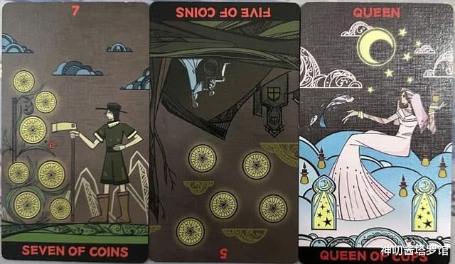 牌:星币七+ 星币五- 圣杯皇后+