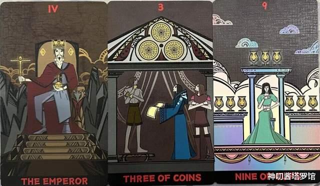 牌:皇帝+ 星币三+ 圣杯九+