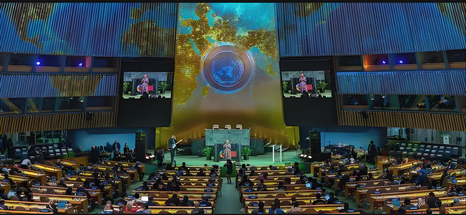 联合国大会厅内气氛紧张,各国代表神情凝重。