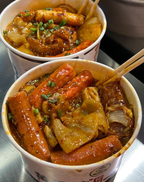 酱汁的做法各家不同,但核心是蒜蓉辣酱加淀粉勾芡。有的店会用高汤做底,加入辣椒粉、花椒粉、孜然粉、白糖和大量的蒜末,煮开后淋入水淀粉,搅到浓稠能挂勺。酱汁要趁热浇在炸串上,让每一片土豆、每一根花菜都裹满酱汁。吃的时候用竹签扎着,酱汁顺着滴下来,得赶紧用嘴接住。黄石的夜市里,卖土豆片的小摊前总是围满了人,大家站着吃,手里端着盘子,竹签扎得飞快,嘴角沾着酱汁也顾不上擦。