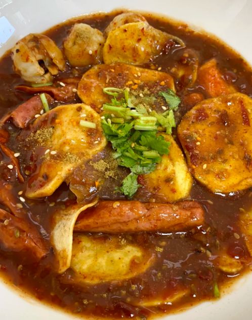湖北黄石的街头小吃里,土豆片是一道独特的存在。它不是简单的炸土豆片,而是一个组合:土豆切厚片炸到外脆内软,再加上各种炸串——藕片、茄子、花菜、火腿肠、豆腐干,全部炸好后堆在盘子里,最后浇上一大勺浓稠的酱汁。酱汁是这道小吃的灵魂,咸香微辣,带着蒜香和一点点甜,浇在炸物上,渗进每一道缝隙,让原本普通的炸串瞬间有了层次。