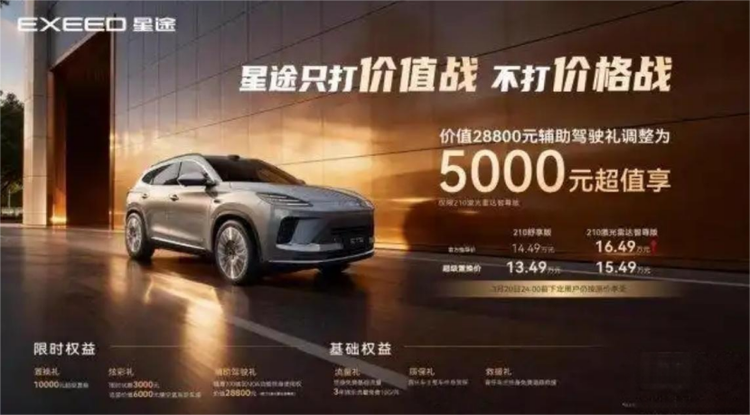 2026年3月,奇瑞星途率先官宣涨价,旗下ET5 210激光雷达智尊版官方指导价上调5000元,调整后售价16.49万元,成为今年国内首个官宣涨价的汽车品牌。作为奇瑞迎战高端市场的“先行兵”,星途过往的表现不算出色。其没有在当前车市销量整体承压的背景下利用好新能源优势,反而逆势涨价,大有“拿小销量试水”的广泛质疑。