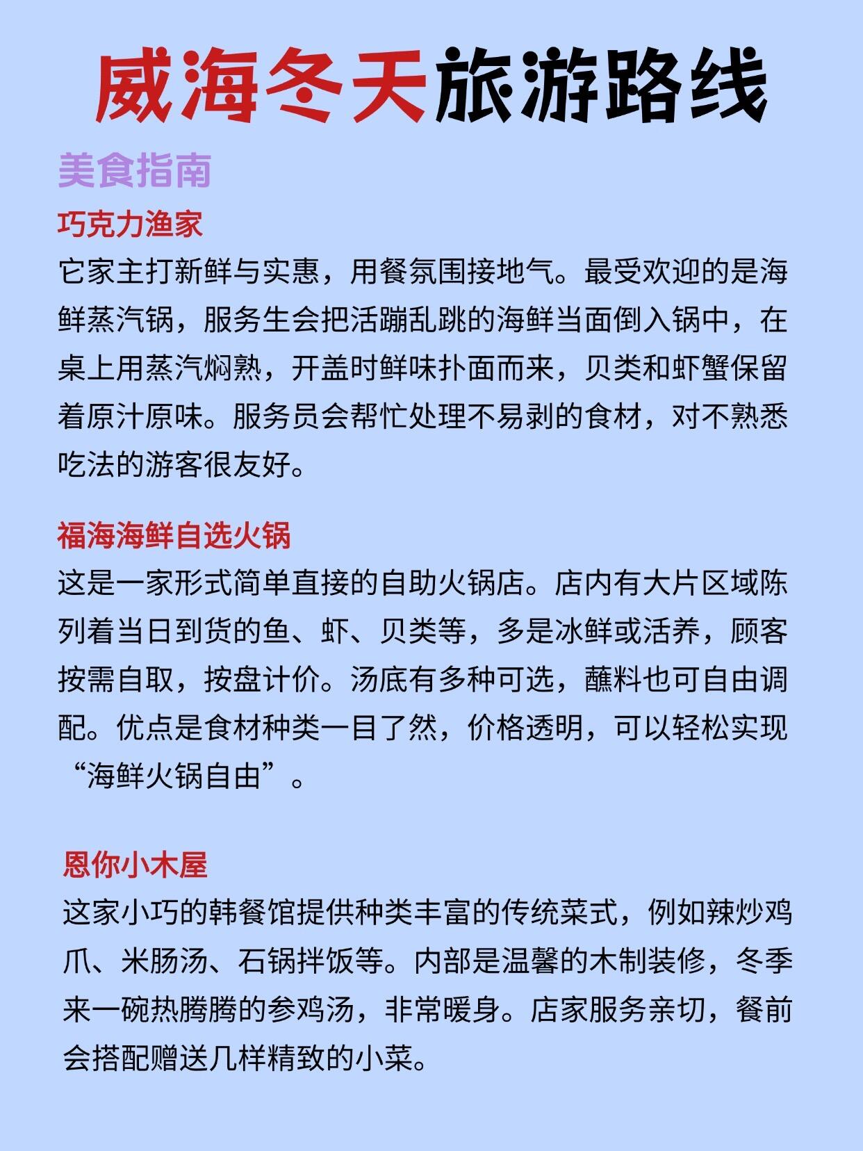 威海旅游已回,为了让你们可以玩得开心,一回来就整理了这份威海冬天旅游攻略,绝对扎实-