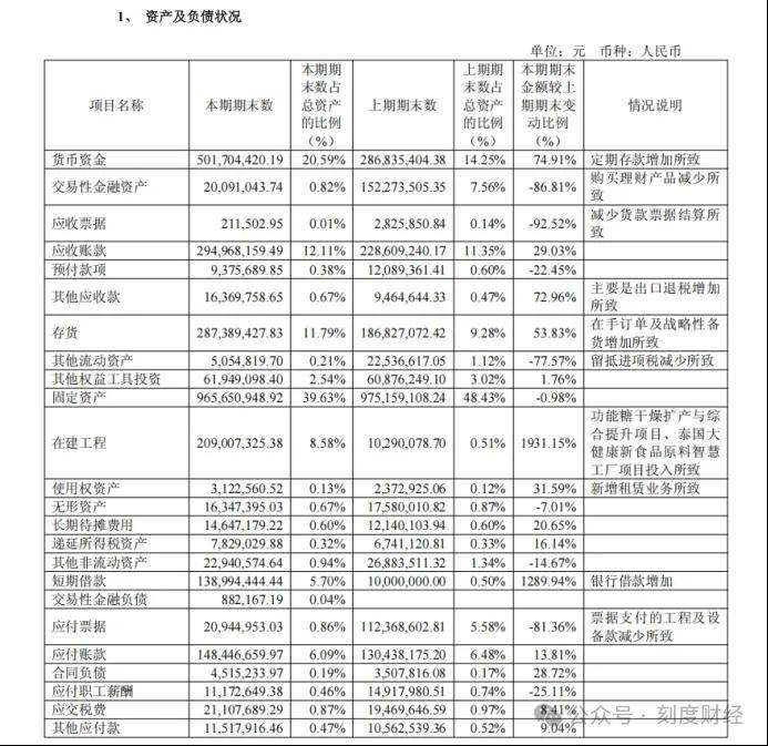 值得注意的是,公司营收增长主要依赖销量提升与产品结构优化,高毛利的抗性糊精销售占比提升带动毛利率上涨7.93个百分点至42.28%,但盈利增长并没有转化成实打实的现金流入。
