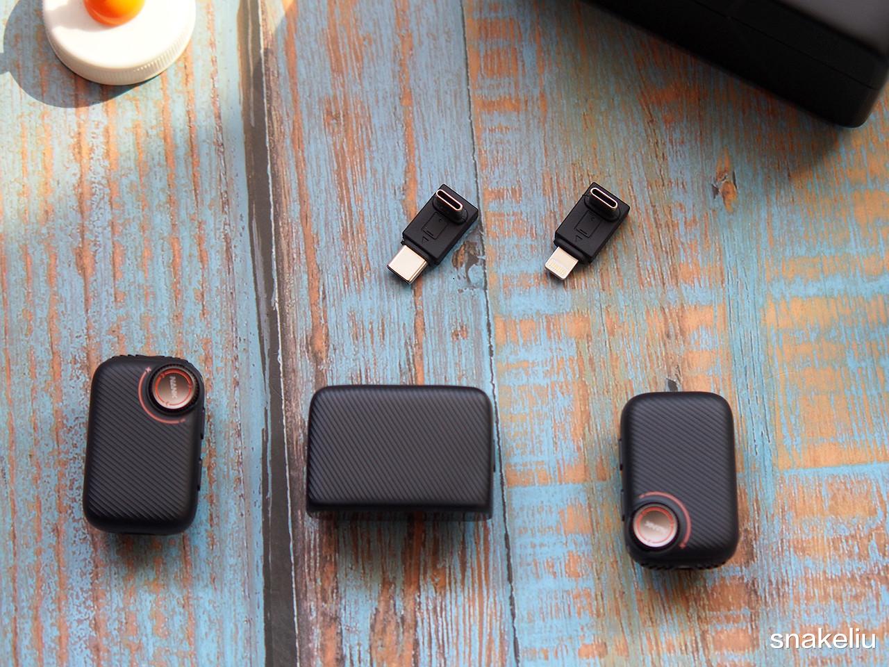 打开电池仓可以看到里面左右各一放置的麦克风,中间是2.4G无线接收器。接收器上方居然还有两个接口转接器,分别是C to C和L to C的转接,基本涵盖了市面上各类手机和相机接口。