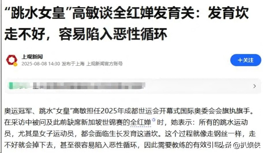 高敏却清醒发声,直言女子跳台运动员的发育期,是职业生涯最大的难关。