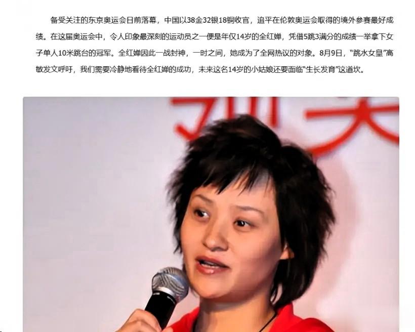 高敏4年两次预警,当初无人听,如今全应验其实全红婵的困境,早就被“跳水女皇”高敏看在眼里,四年内两次公开提醒,可惜没人当真。