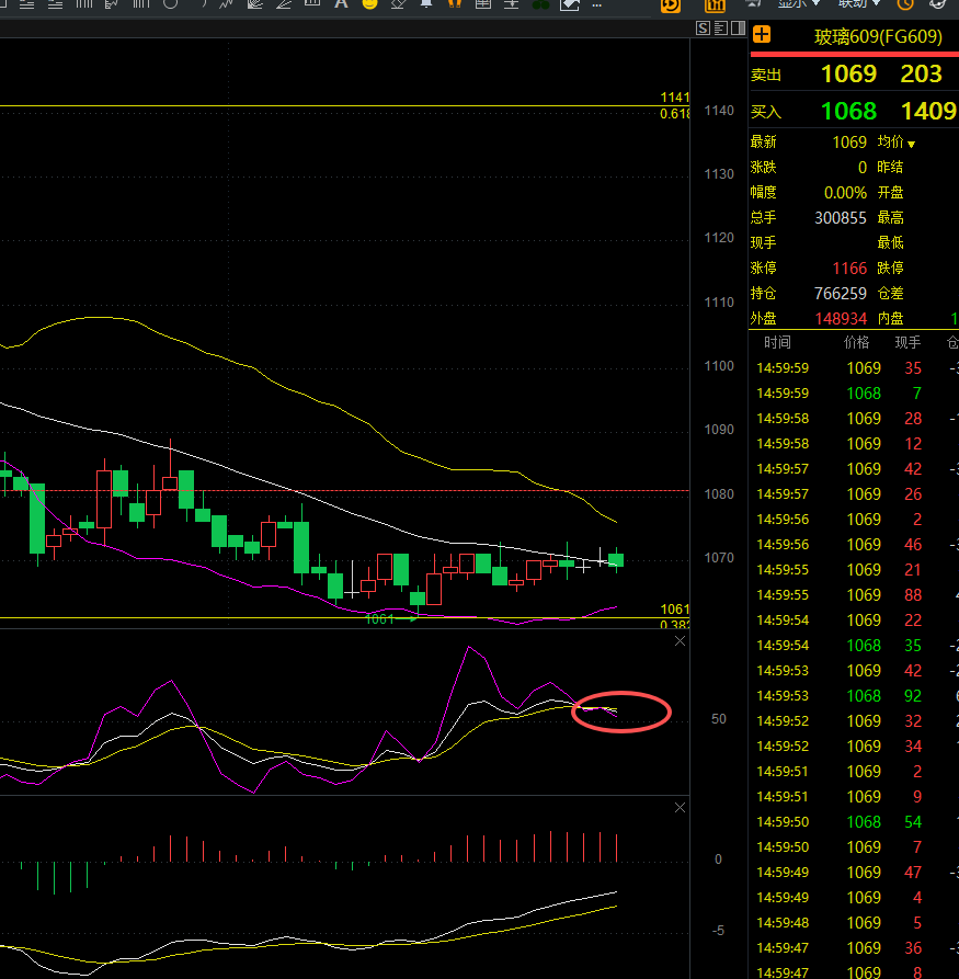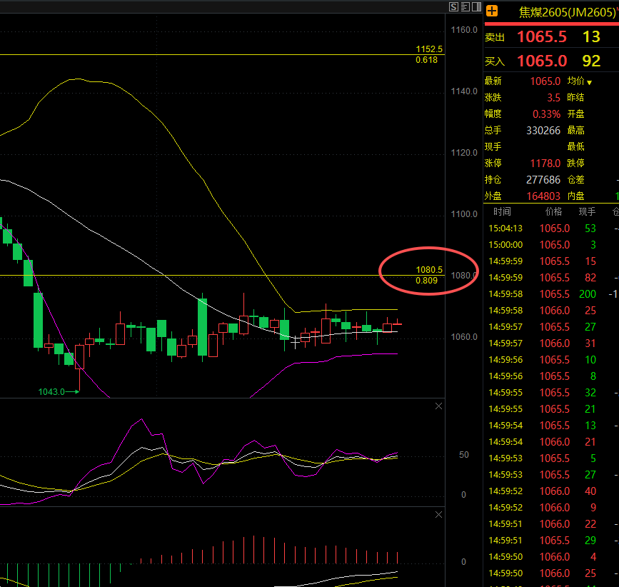 压力位:第一压力1065-1068(今日开盘价+前日结算价,阻力较强);第二压力1072-1075(今日最高价+前期震荡平台下沿,突破难度极大)