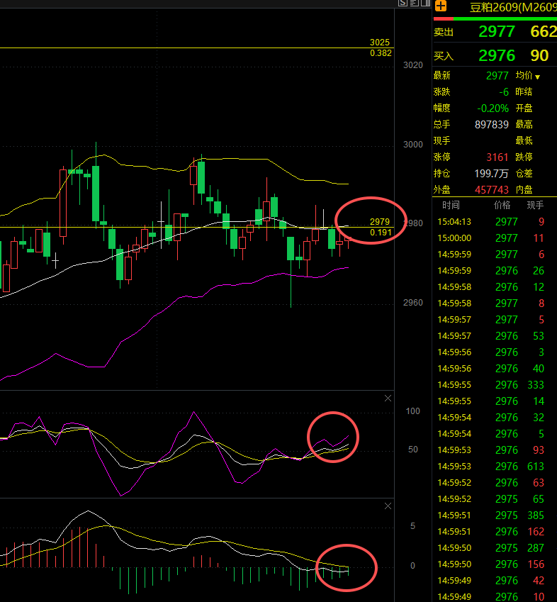 支撑位:第一支撑2968-2972(今日震荡下沿+布林带下轨,短期支撑);第二支撑2960-2965(前期低位,强支撑);第三支撑2940(近期震荡下沿,跌破后打开新下行空间)
