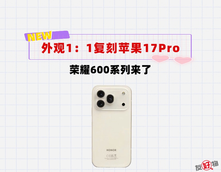 近日,荣耀600系列的真机图已经曝光!并且,其将于2026年4月23日全球发布,率先登陆全球市场,随后于5月在国内市场推出。但耀粉们一看到这个外观,瞬间坐不住了,毕竟它太像苹果17Pro了。难道真的如网友们所说:友商的设计就是最好的设计吗?