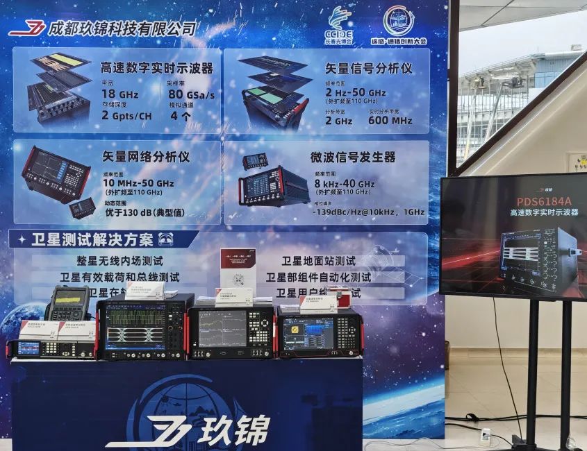 本届大会,玖锦科技展出的高速数字实时示波器PDS6184A,具备18GHz带宽、80GSa/s采样率,能够精准捕捉高速射频信号,为高速接口与总线测试等场景提供可靠支撑。矢量网络分析仪VNA5000A则专注于射频链路和卫星天线的性能评估,其高精度的测量能力确保天线的辐射特性与传输链路的稳定性。微波信号发生器ASG3000B为卫星测试提供高精度的信号源,可模拟多种复杂的信号环境,助力卫星通信系统的性能验证。矢量信号分析仪PSA5000A不仅能和矢量网络分析仪、矢量信号源强强联动,深入“体检”卫星载荷的元件、组件及子系统,还能够对卫星通信中的调制信号进行深度剖析,为系统优化提供关键依据。