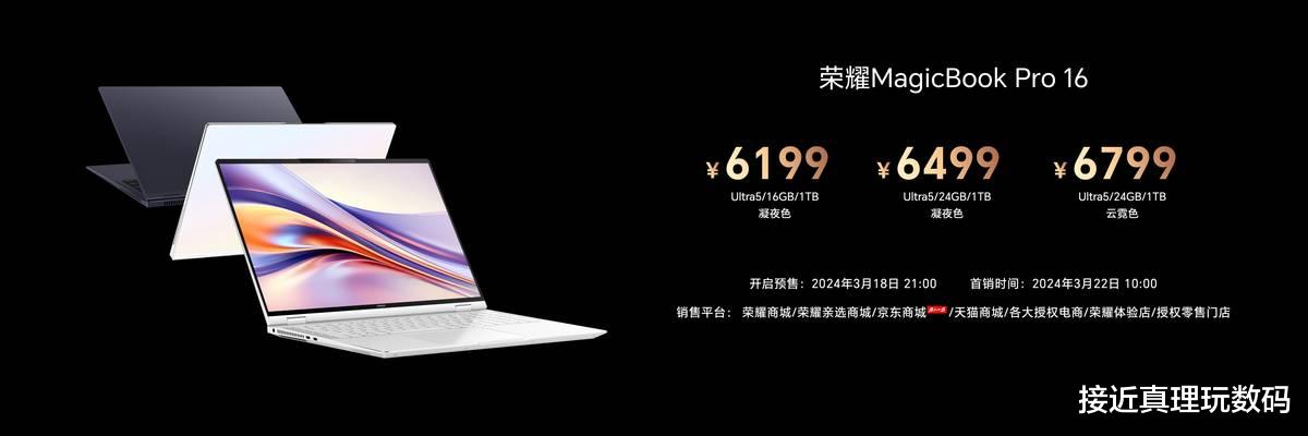 荣耀MagicBook Pro 16轻至1.79kg,提供全新设计的云霓色与凝夜色两款配色,搭载行业领先的3K高分辨率LCD屏,支持荣耀绿洲护眼技术,同时还是Windows平台全球首款空间音频笔记本。