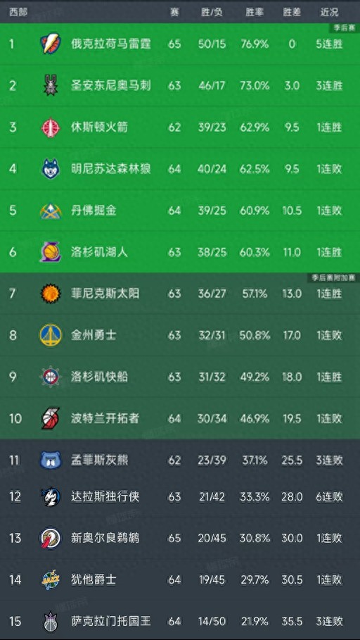 北京时间3月8日,今日的NBA常规赛结束了所有比赛,我们看看西部的最新排名!今天的战况主要是雷霆104-97险胜残阵勇士,快船123-120险胜灰熊,森林狼92-119不敌魔术,爵士99-113憾负雄鹿!