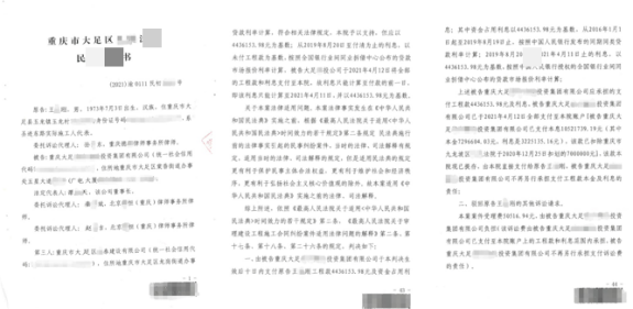 据了解,为承建大足区市政道路工程,王某刚、刘某洪等六名施工人四处借贷、自筹资金推进建设,可工程验收合格后,工程款却迟迟未能兑现。他们不仅因此背负巨额债务本息,更无力支付数百名农民工的工资,十余载艰难讨薪维权,让这群实际施工人付出了沉重的代价。