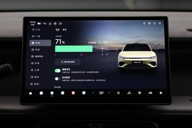 实际续航达成率表现稳定,市区拥堵路况下百公里电耗约为12.5kWh,高速110km/h巡航状态下电耗为15.8kWh,605公里版本实际续航可达到550公里左右,日常通勤场景基本可实现一周一充。此外,车辆全系标配3.3kW VTOL对外放电功能,可满足露营等场景的供电需求,拓展了出行场景多样性。
