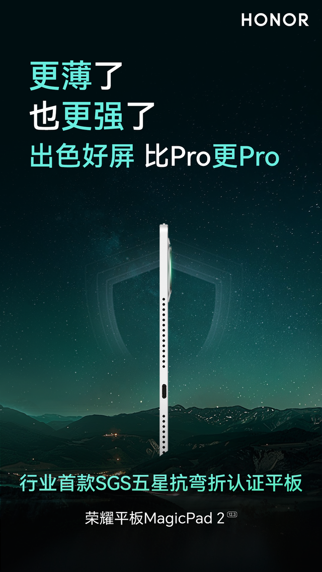 行业首个SGS五星抗弯折认证!荣耀平板MagicPad2抗弯能力遥遥领先