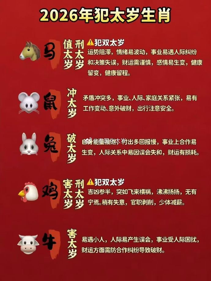 社会层面:朋友圈或社区中多人犯太岁,易生群体事件,如纠纷或意外。