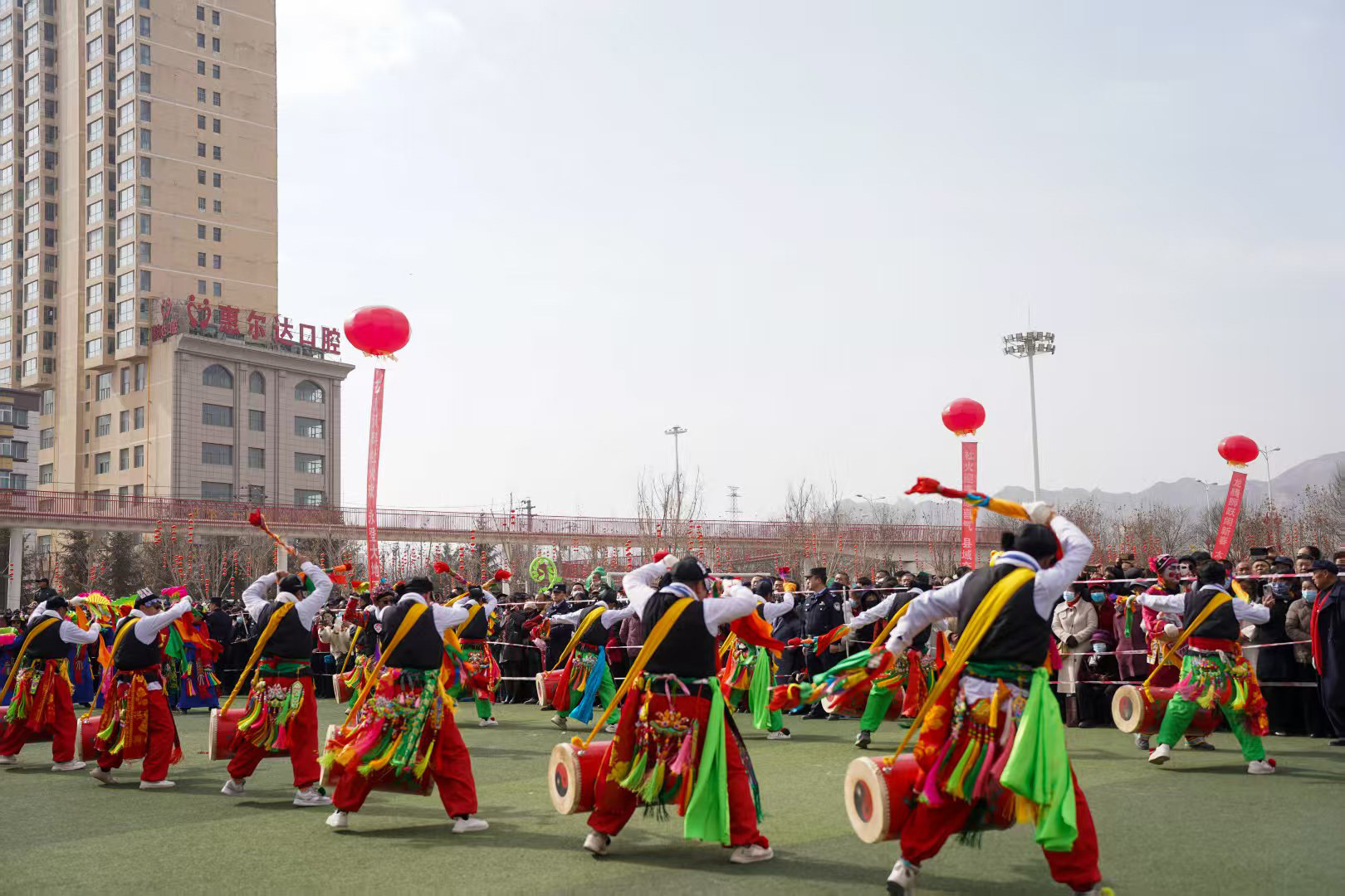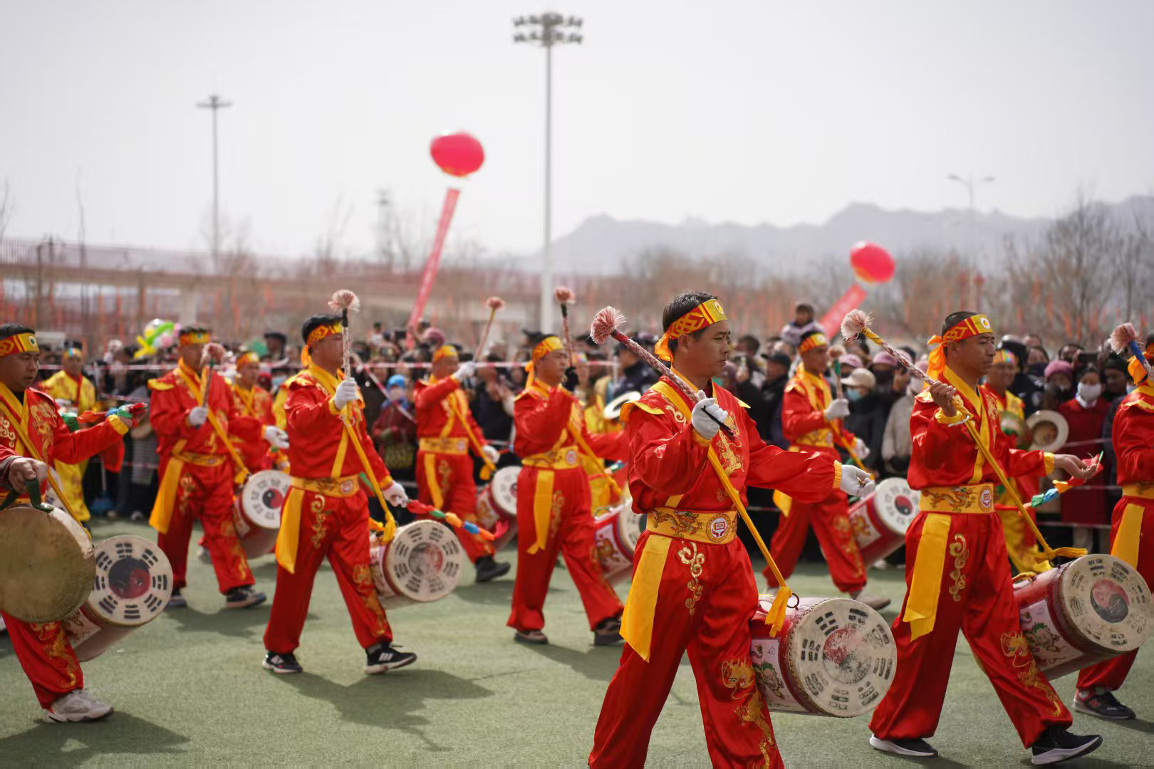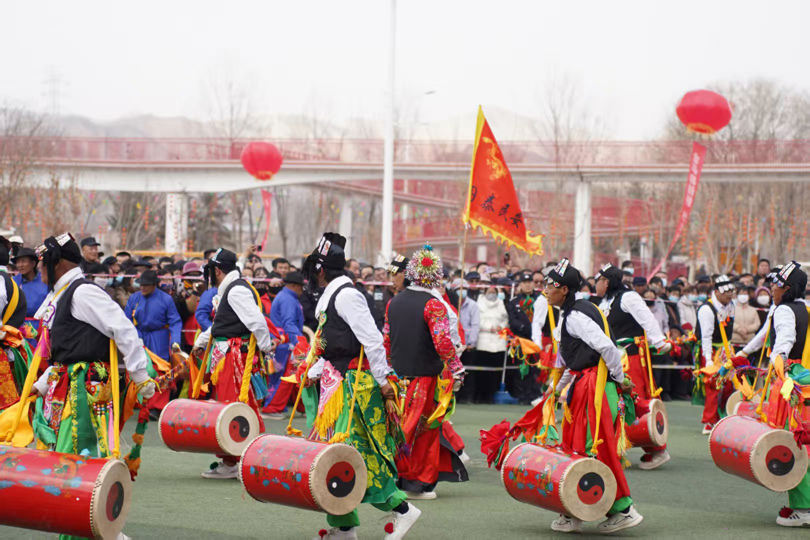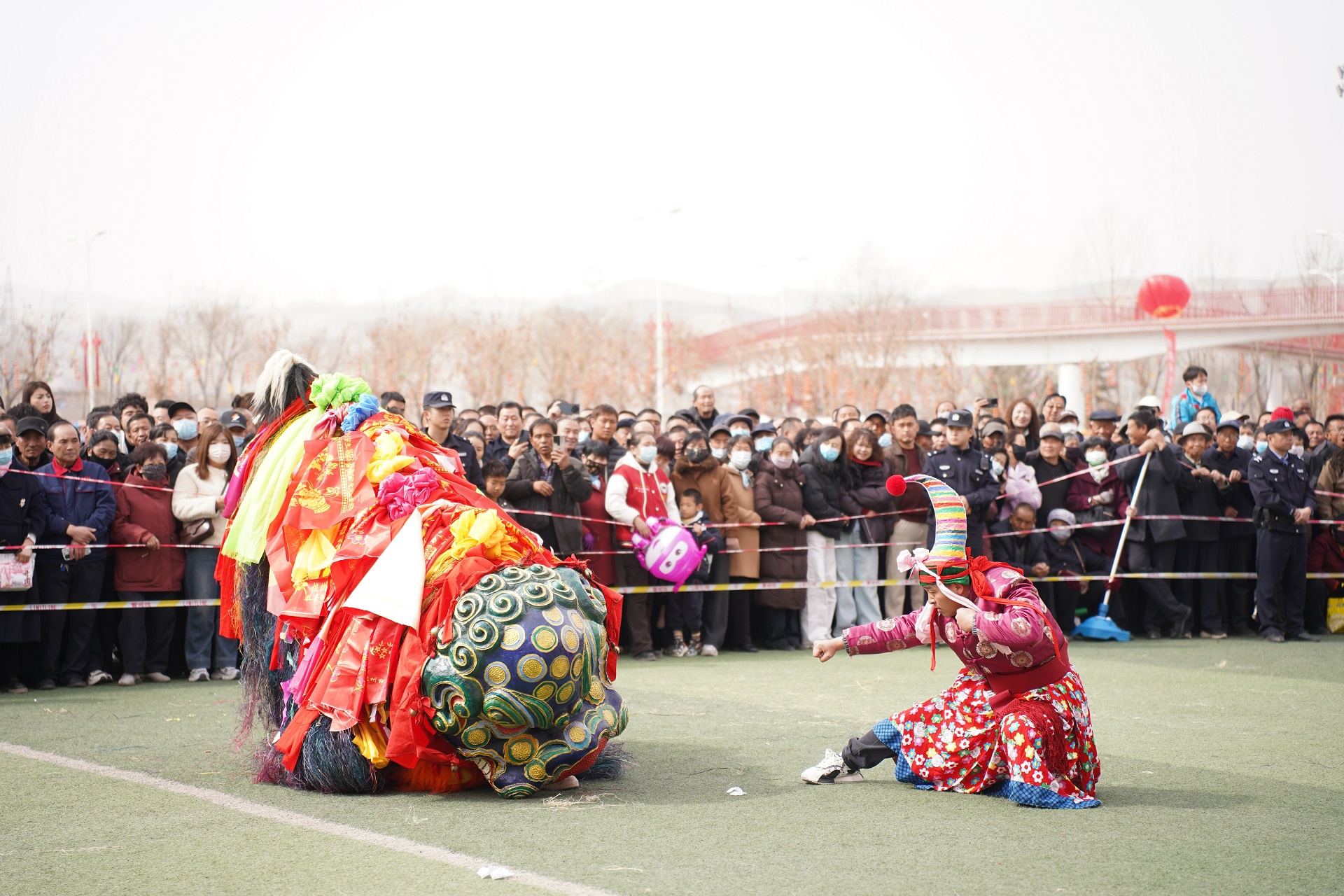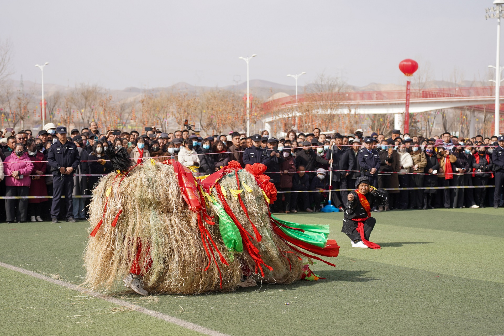 今年的社火展演,堪称一场民间艺术的“博览会”。首先闯入眼帘的,是气势磅礴的太平鼓队。鼓手们腾挪跳跃,抡臂击鼓,那沉雄的鼓点仿佛大地的心跳,传递着祈求国泰民安、五谷丰登的美好愿景。紧随其后的硬狮子表演,则展现了刚猛威武的力量之美。舞狮者步伐稳健,与“狮子”浑然一体,扑、跌、翻、滚,每一个动作都充满了原始的张力与生命的活力。