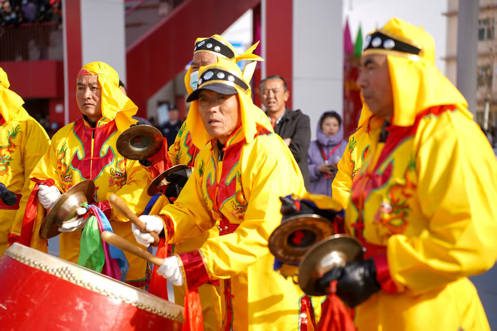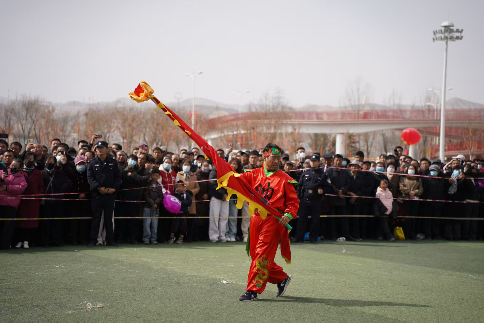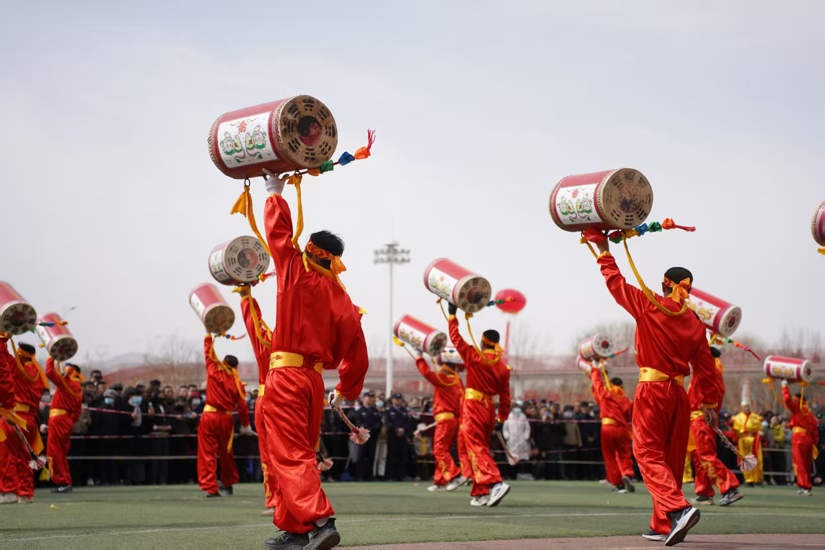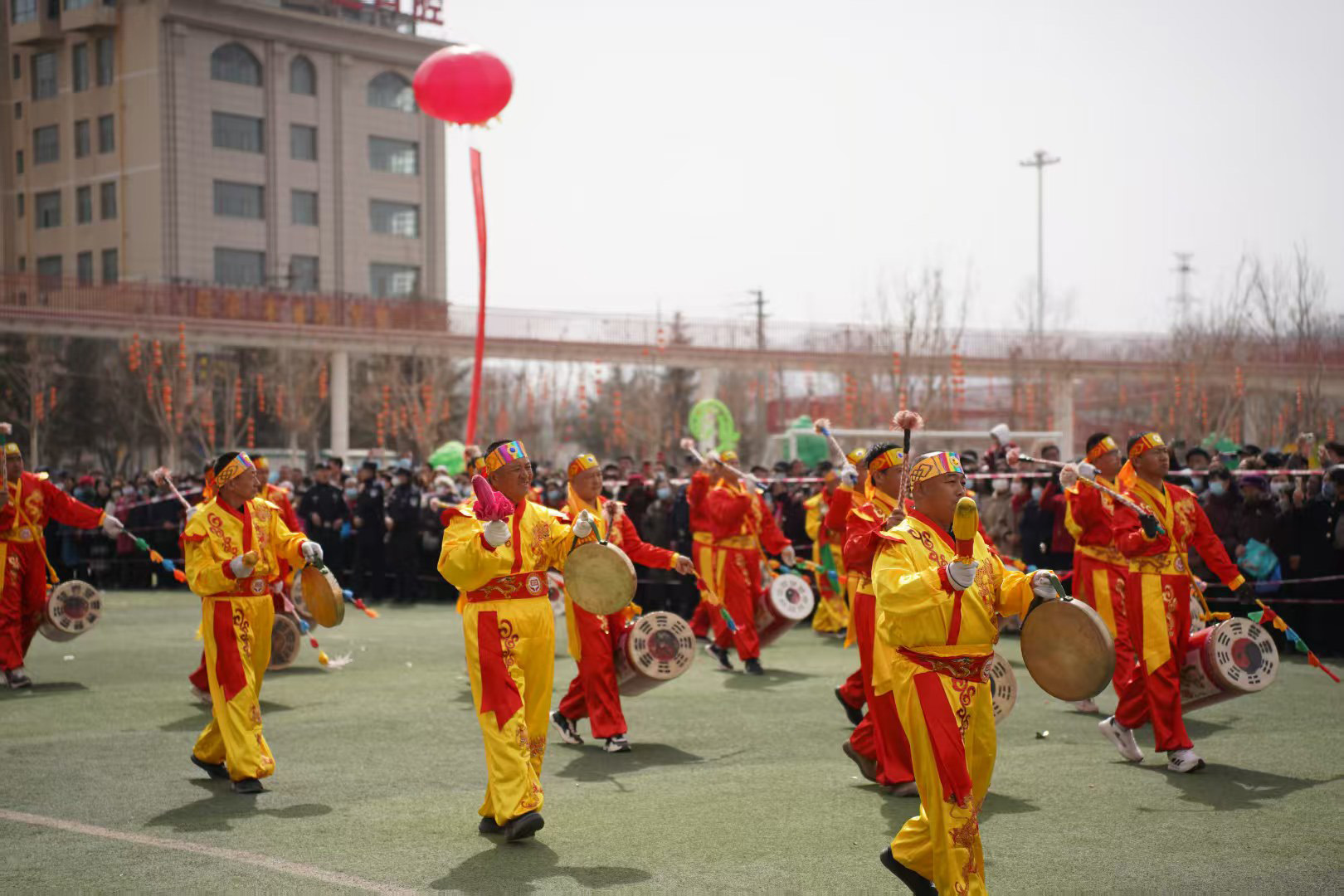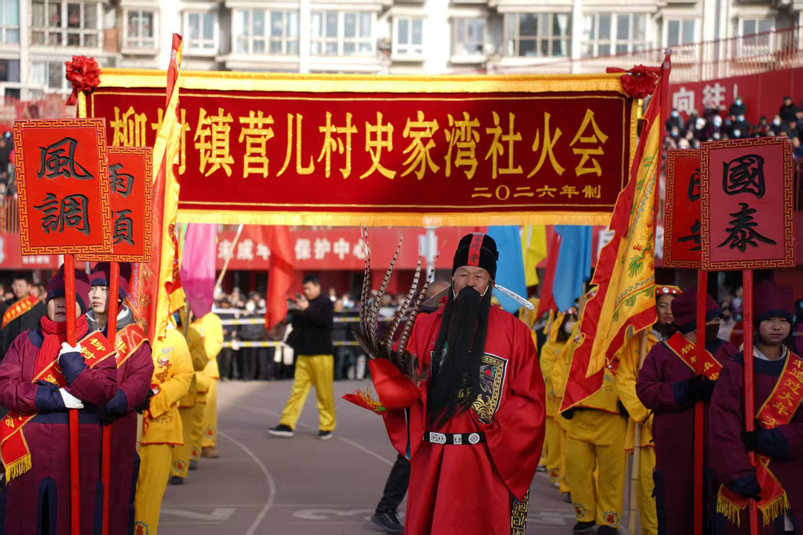 今年的社火展演,堪称一场民间艺术的“博览会”。首先闯入眼帘的,是气势磅礴的太平鼓队。鼓手们腾挪跳跃,抡臂击鼓,那沉雄的鼓点仿佛大地的心跳,传递着祈求国泰民安、五谷丰登的美好愿景。紧随其后的硬狮子表演,则展现了刚猛威武的力量之美。舞狮者步伐稳健,与“狮子”浑然一体,扑、跌、翻、滚,每一个动作都充满了原始的张力与生命的活力。