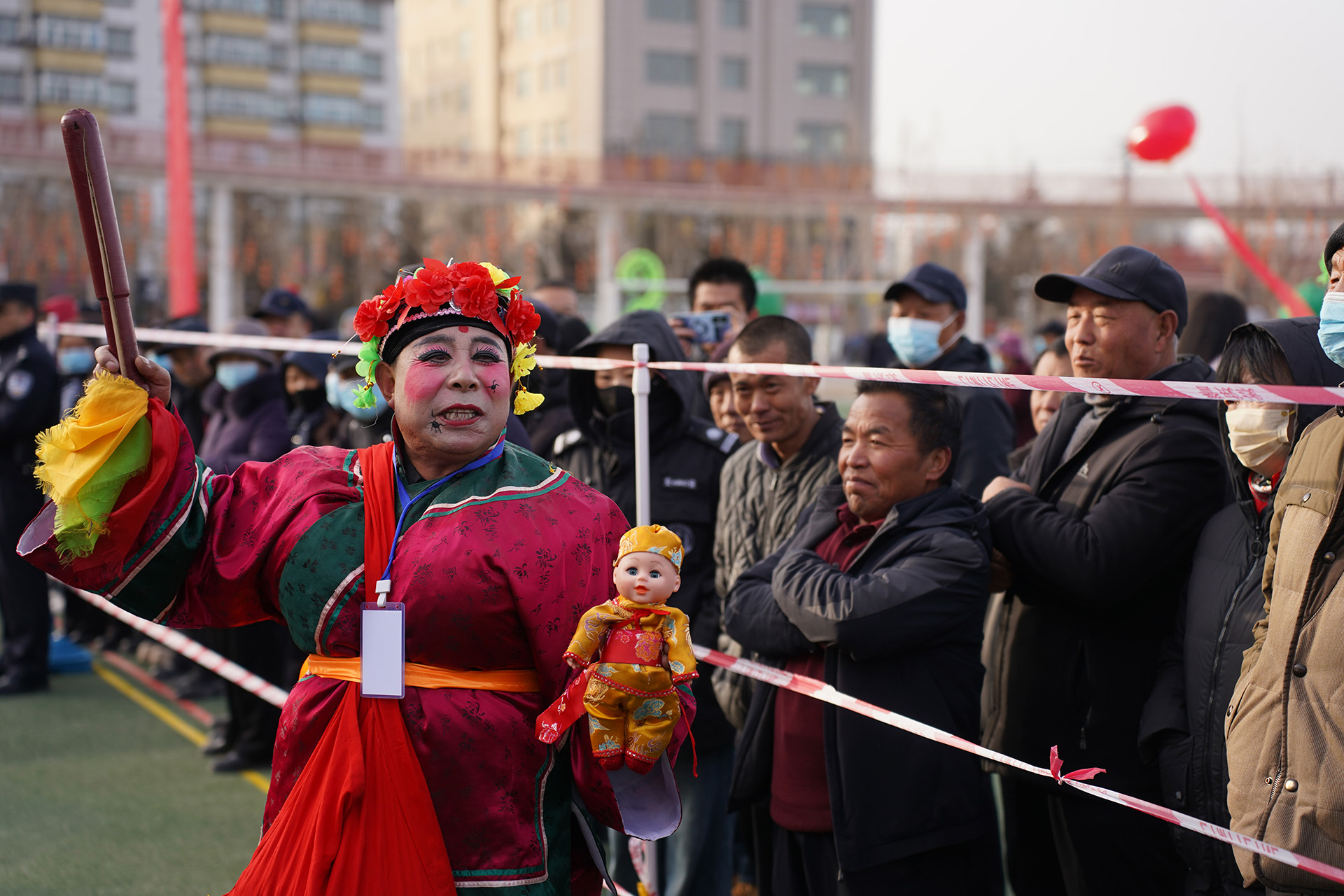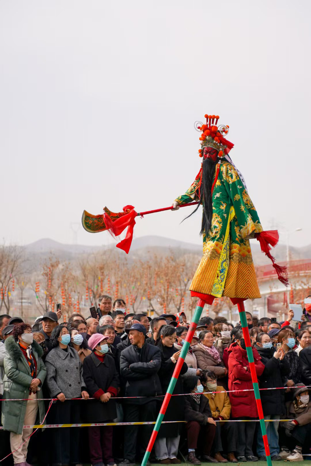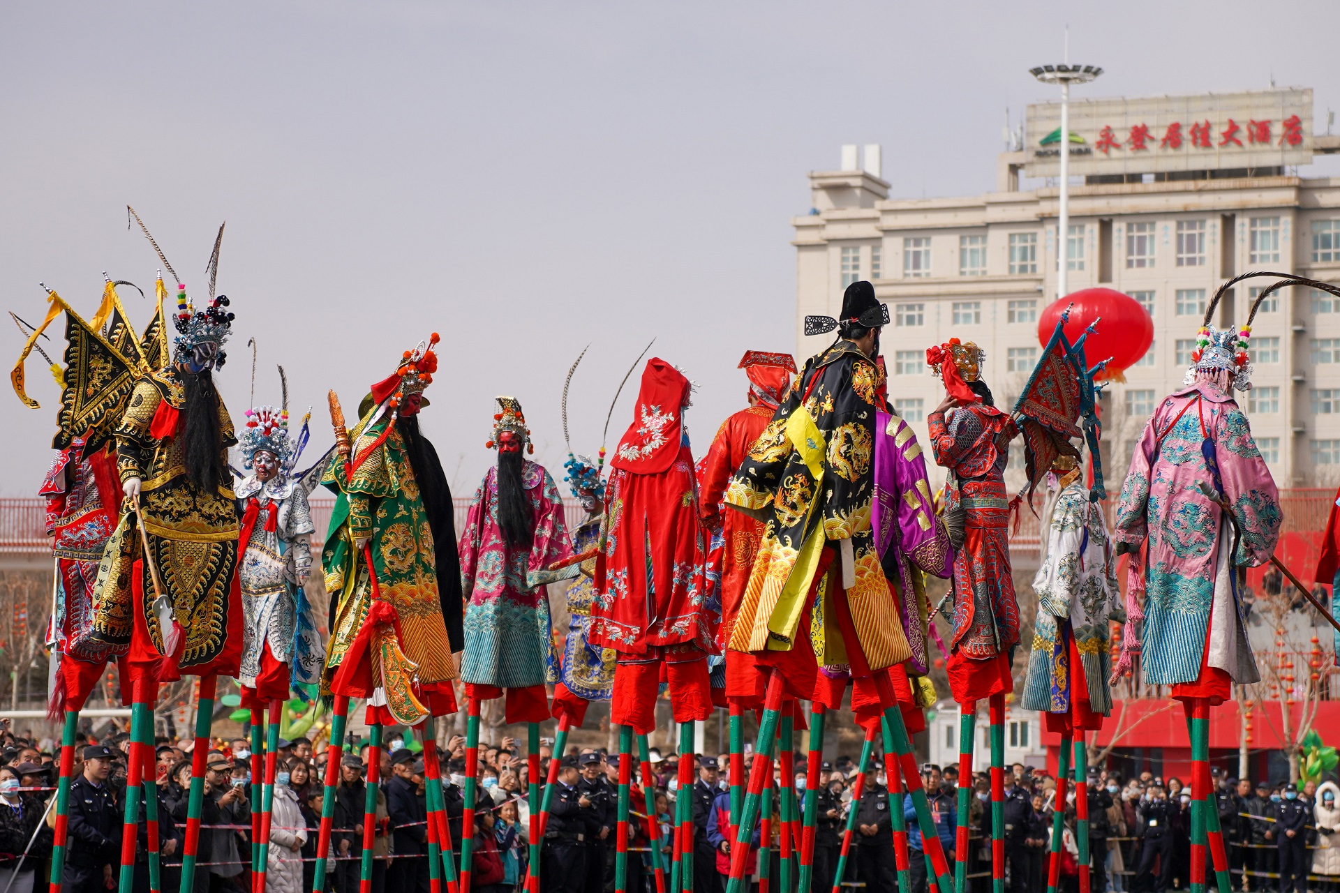 凌空而行的高跷队总是引人惊叹。表演者们脚踩数尺高的木跷,如履平地,他们扮演着历史人物或神话角色,身姿挺拔,衣袂飘飘,在人群的头顶上方演绎着古老的故事。与之相映成趣的,是诙谐幽默的“大头和尚戏柳翠”。表演者头戴硕大的笑容可掬的娃娃头套,动作夸张滑稽,互动感极强,逗得观众尤其是孩子们前仰后合,笑声不断。
