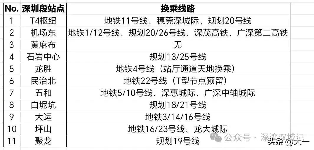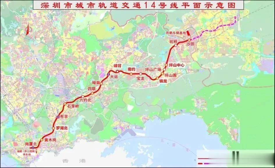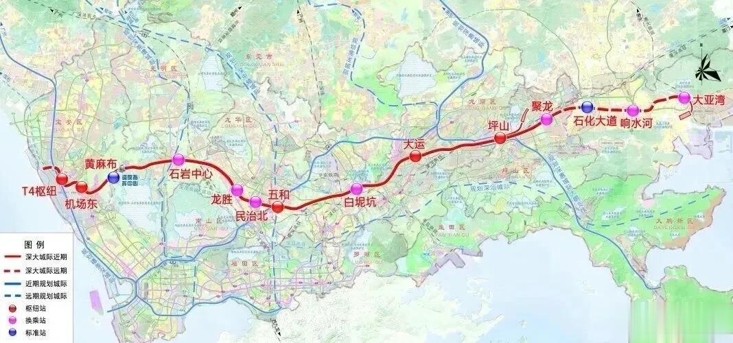 全线计划设站14座,其中深圳段11站,惠州大亚湾段3站。目前,深圳段(深圳机场至坪山段)已启动建设,而惠州段则正处于方案深化与研究阶段。