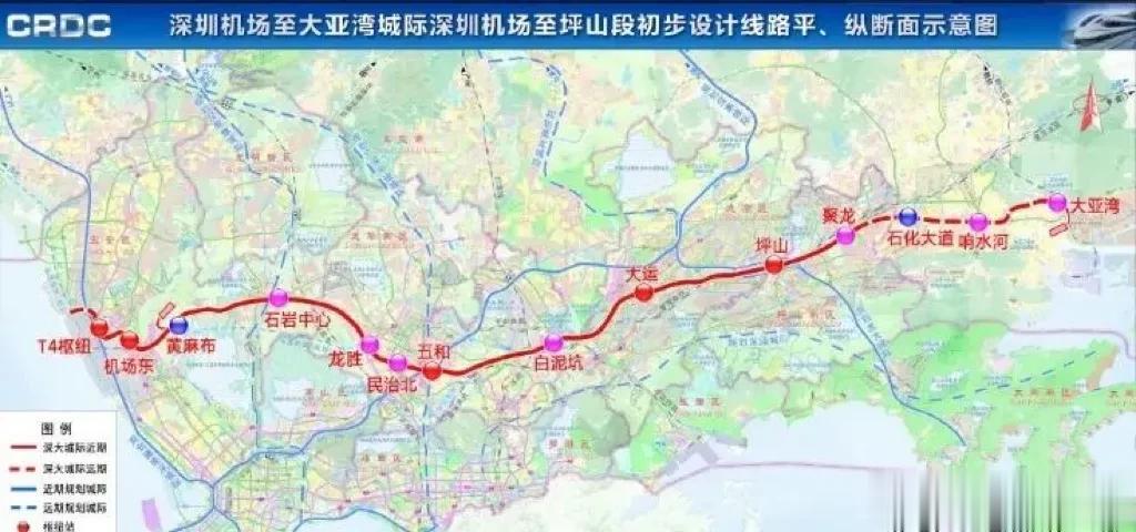 深大城际,顾名思义,是一条连接深圳与大亚湾的城际铁路。它西起深圳机场,东至惠州大亚湾,全长约86.9公里,设计时速160公里,总投资规模约526亿元。