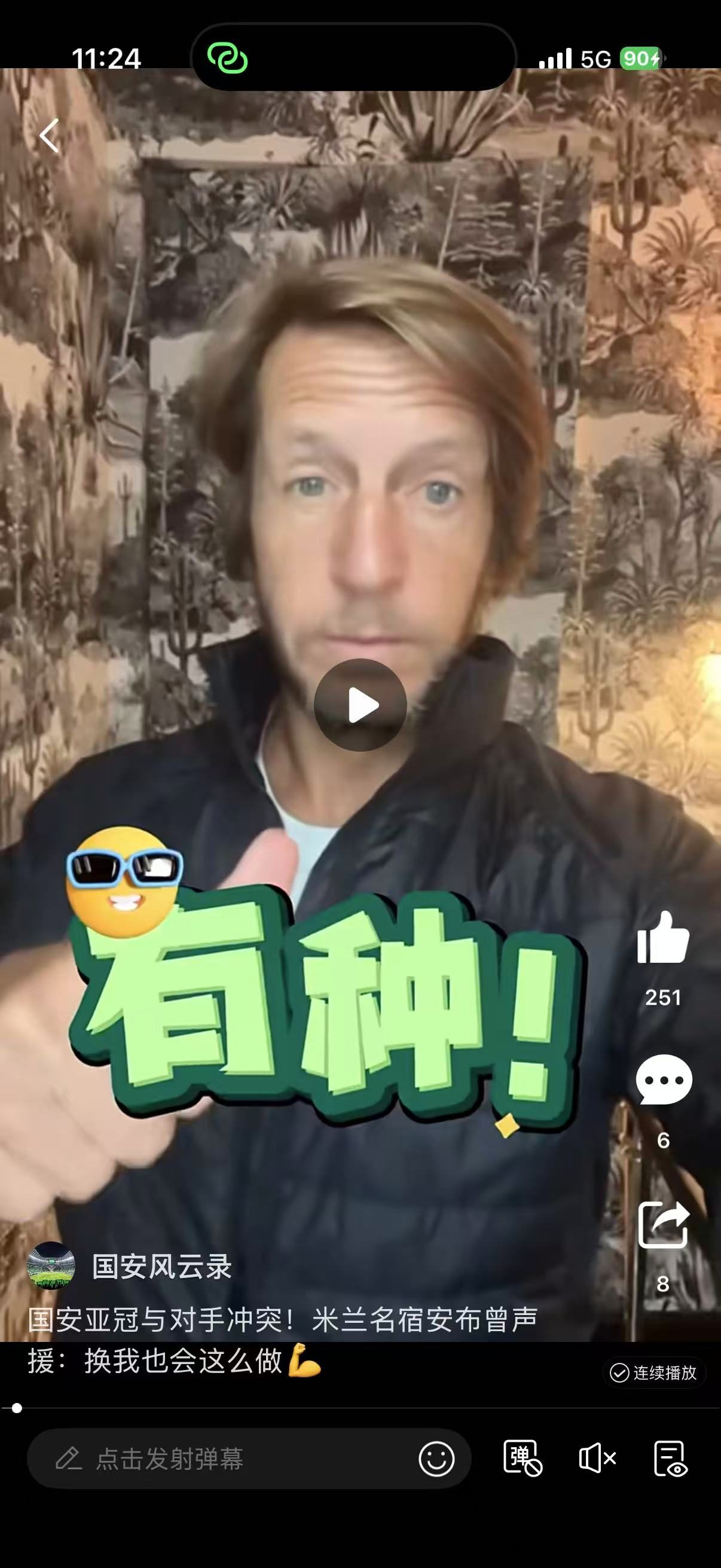 不过,对于国安在这场比赛中与对手发生冲突这件事,米兰名宿安布在赛后曾经专门拍摄视频声援国安,在视频中先是表示国安球员有种!同时,他还表示看到现场的视频,实话实说自己也会做出同样的举动,国安球员的目的是保护自己的队友,在收到对方球员的挑衅之后,在自己队友陷入危险之中,前来帮助队友,换作自己也会这么做,自己也永远会选择这条路,为队友出头是正确的,当然裁判可能会给出处罚,但是在场上没有人,可以触碰自己的队友,所以自己还是支持国安球员冲上去保护自己的队友,即便是因此吃到了处罚,也一定要团结起来,