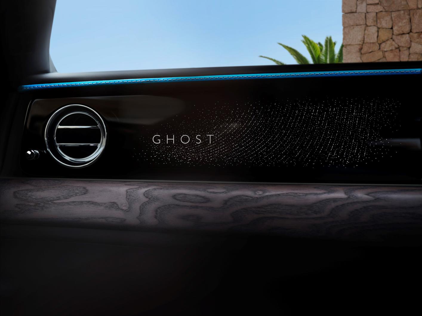 与这一精妙细节相互呼应的,是一块呈现于副驾驶一侧的全展宽辉光面板——这一前沿工艺首次亮相即在2020年发布的古思特之上。在古思特系列II上,全新辉光面板自夜空繁星中汲取灵感,并将星空运行轨迹进行艺术化提炼,最终呈现为延时摄影般的艺术作品。除此之外,客户还可以与劳斯莱斯Bespoke高级定制设计师们携手创作属于自己的辉光面板主题。