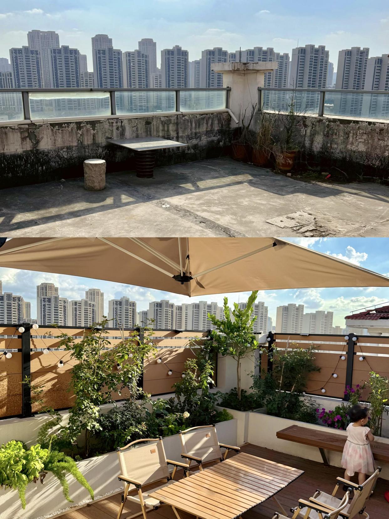 露台的装修更是烧钱,费用比装室内还贵,随便搞搞几万块没了,好看的露台都是钱砸出来的,一会儿想弄个阳光房,一会儿又馋花园造景,稍微没把持住,预算就超得没边了。