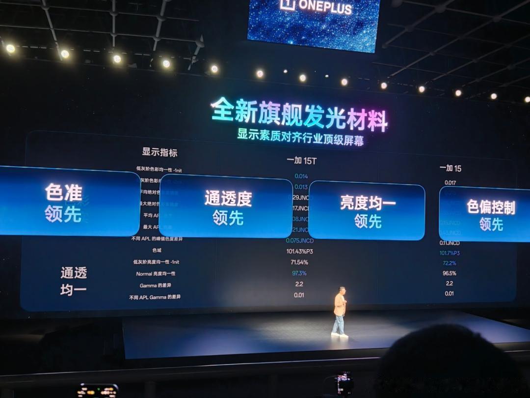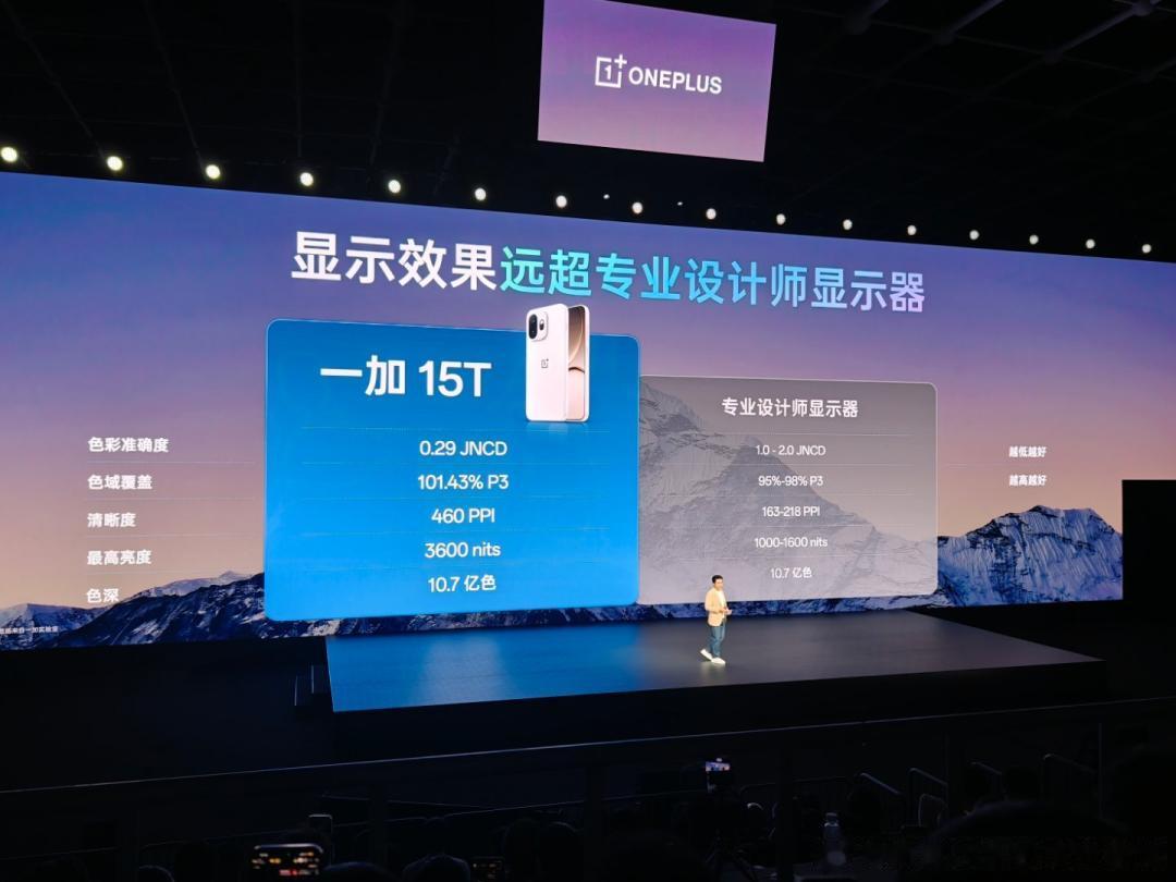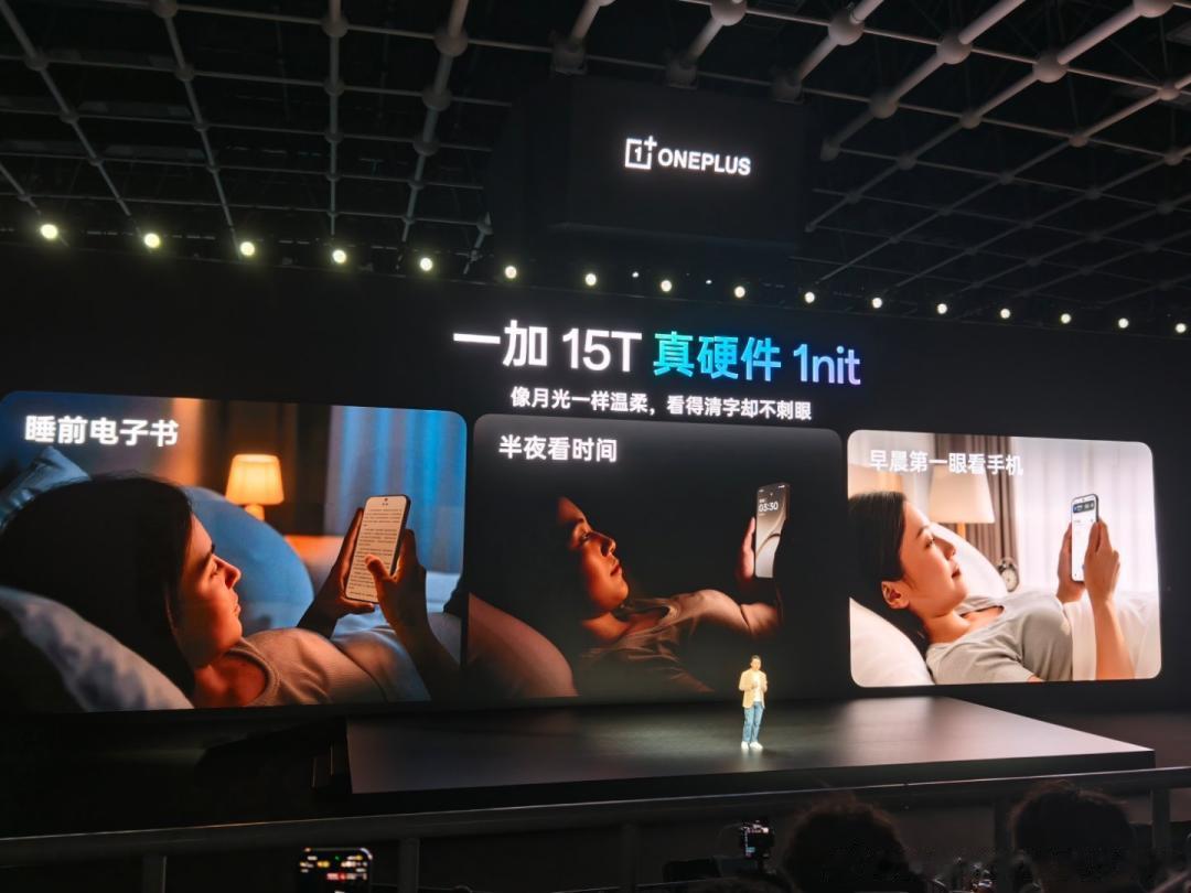 行业顶级 165Hz 旗舰小直屏,超流畅超护眼一加 15T 搭载行业唯一的 6.32 英寸 165Hz 旗舰小直屏,首次将超流畅的 165Hz 超高刷体验带给小屏旗舰。该屏幕采用全新旗舰发光材料,在色准、通透度、亮度均一性以及色偏控制上均做到行业领先。同时,一加 15T 还启用全球唯二、中国手机厂商第一条自研「屏幕科学产线」,每一块一加 15T 屏幕出厂前都会经过二次校准,全方位精准把控屏幕素质,为用户带来通透、自然、准确的色彩表现。此外,一加 15T 还突破低亮度下电流不稳定、显示色彩失准的行业难题,带来全场景「真硬件 1nit 暗夜显示」,即使是深夜微光环境,均能确保屏幕画面通透自然、舒适不刺眼。
