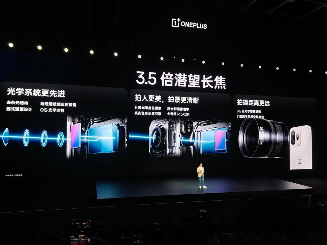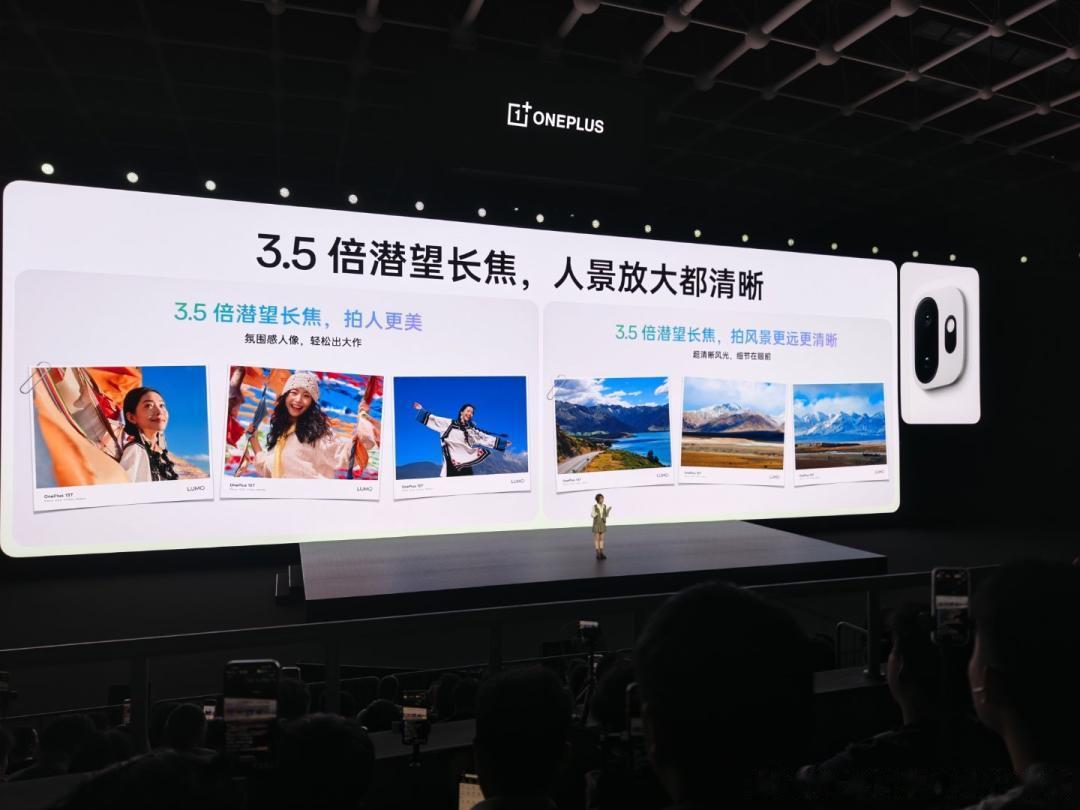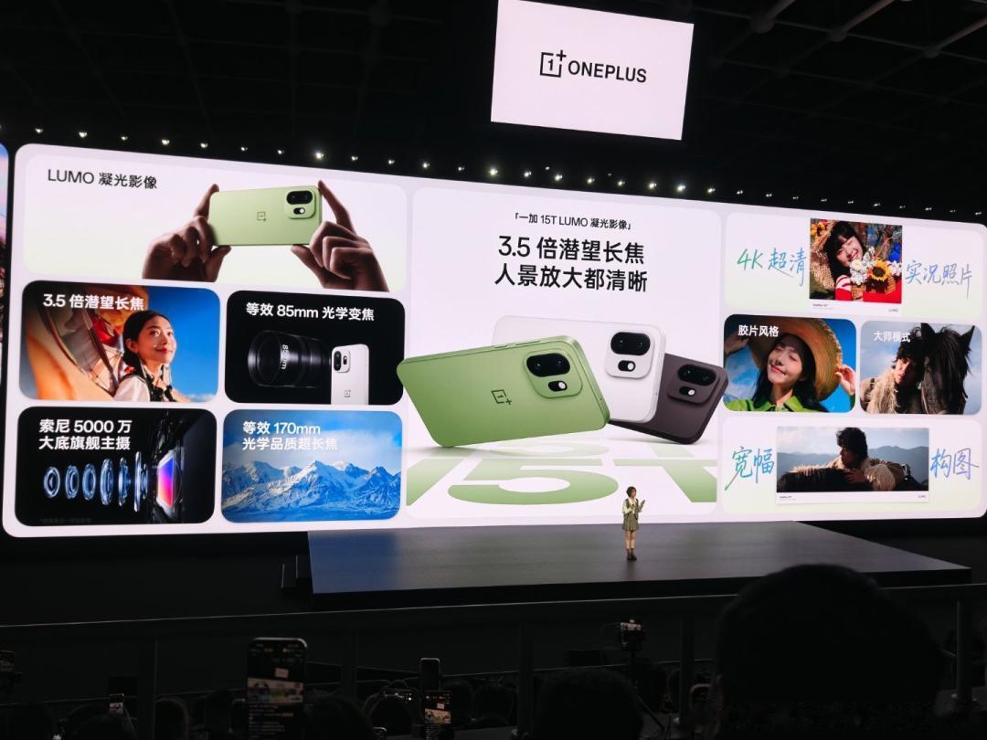 LUMO 凝光影像+旗舰 3.5 倍潜望长焦,拍人拍景都好看一加 15T搭载 5000 万像素索尼超动态大底主摄 IMX906,支持 OIS 光学防抖和全像素全向对焦,同时配备小屏手机中少见的 5000 万像素 3.5 倍潜望长焦,该镜头覆盖 85mm 黄金人像焦段并支持 7 倍无损光学变焦 ,无论近景人像还是远景风光,都能获得清晰细腻的画质表现。