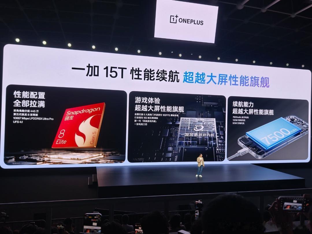 硬件配置大满贯,再造小屏旗舰性能巅峰一加 15T 搭载第五代骁龙 8 至尊版移动平台,配备至高 16GB LPDDR5X Ultra Pro,与至高 1TB 的满血版 UFS 4.1 组成的旗舰存储组合,数据传输速率至高可达 10667 Mbps。