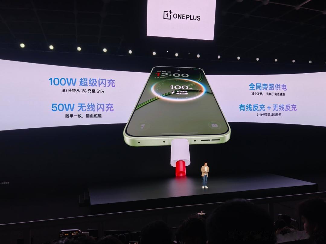 在实际体验中,一加 15T 可支持长达 40.5 小时的连续视频播放或 10.3 小时的重度游戏对战,供用户持久畅玩。一加 15T 支持 100W 超级闪充,电量从 1% 充至 100% 仅需 54 分钟,还拥有行业旗舰标配的 50W 无线闪充,随手一放快速充电。一加 15T 支持行业领先的「全局旁路供电」功能,电源可绕过电池直接为系统供电,减少手机发烫,在保障手机性能释放的同时有效保护手机电池健康。