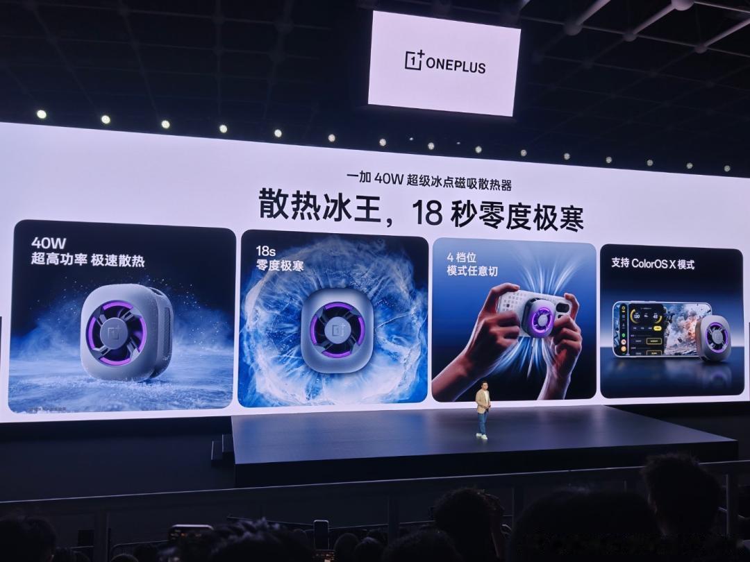 本次发布会上,一加还带来了一系列“又小、又强、又帅、又好玩”的全新专属配件:包括全行业首创的超薄磁吸风冷散热器「一加磁吸冰冰卡」、拥有市面最高 40W 功率的「超级冰点磁吸散热器」、新增桌面支架与多模式调节的「小涡轮 2 代」磁吸无线充,以及质感十足的专属配色「洞洞壳」。以上配件与手机搭配购买,均可享受立减 30 元的套餐专属优惠。