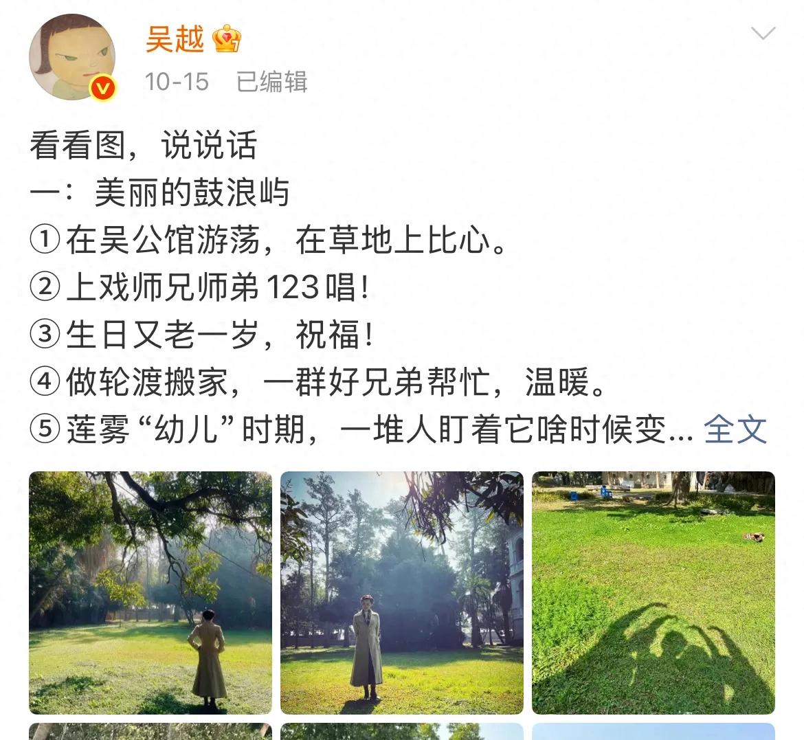 10月15日,演员吴越在社交平台上分享了53岁生日的温馨时刻。