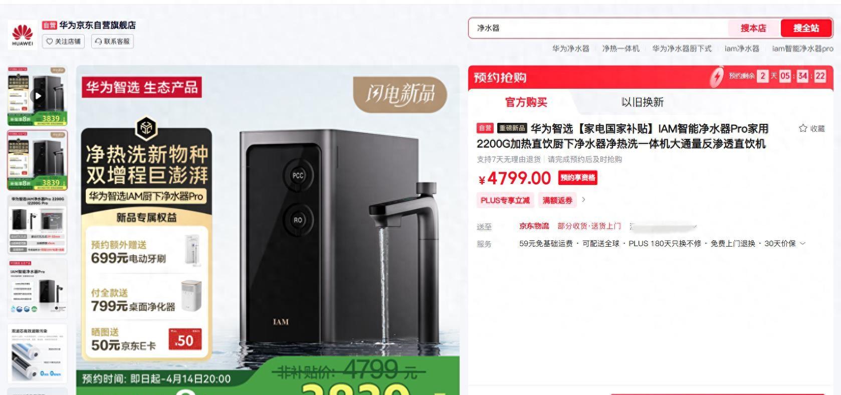 这款净水器将于4月14日正式开售,售价4799元,但目前享受国补8折优惠,到手价仅需3839元。
